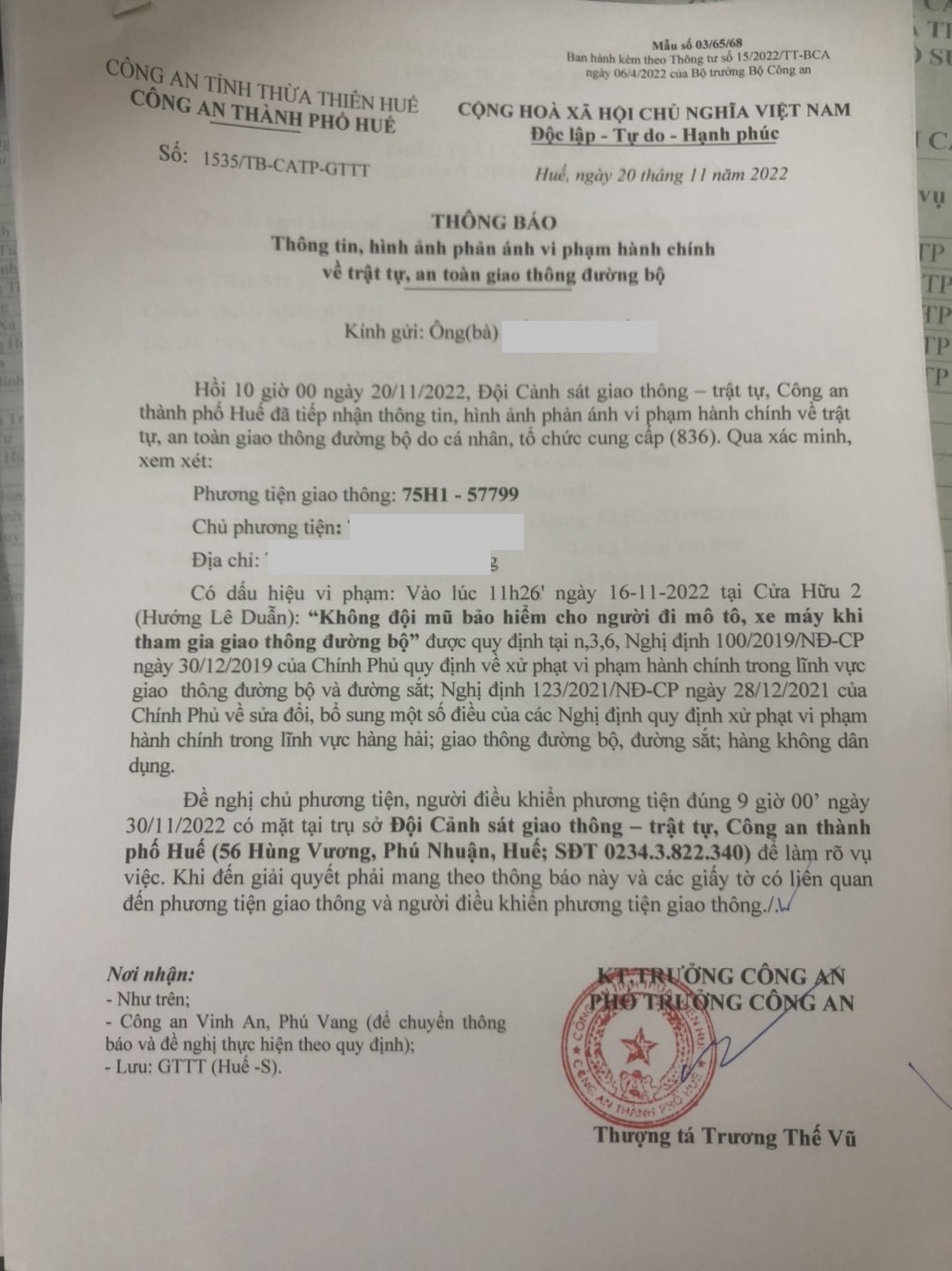 Vấn đề Ông/Bà phản ánh, Công an tỉnh đã chỉ đạo Công an thành phố Huế kiểm tra và xin thông báo kết quả xử lý như sau: