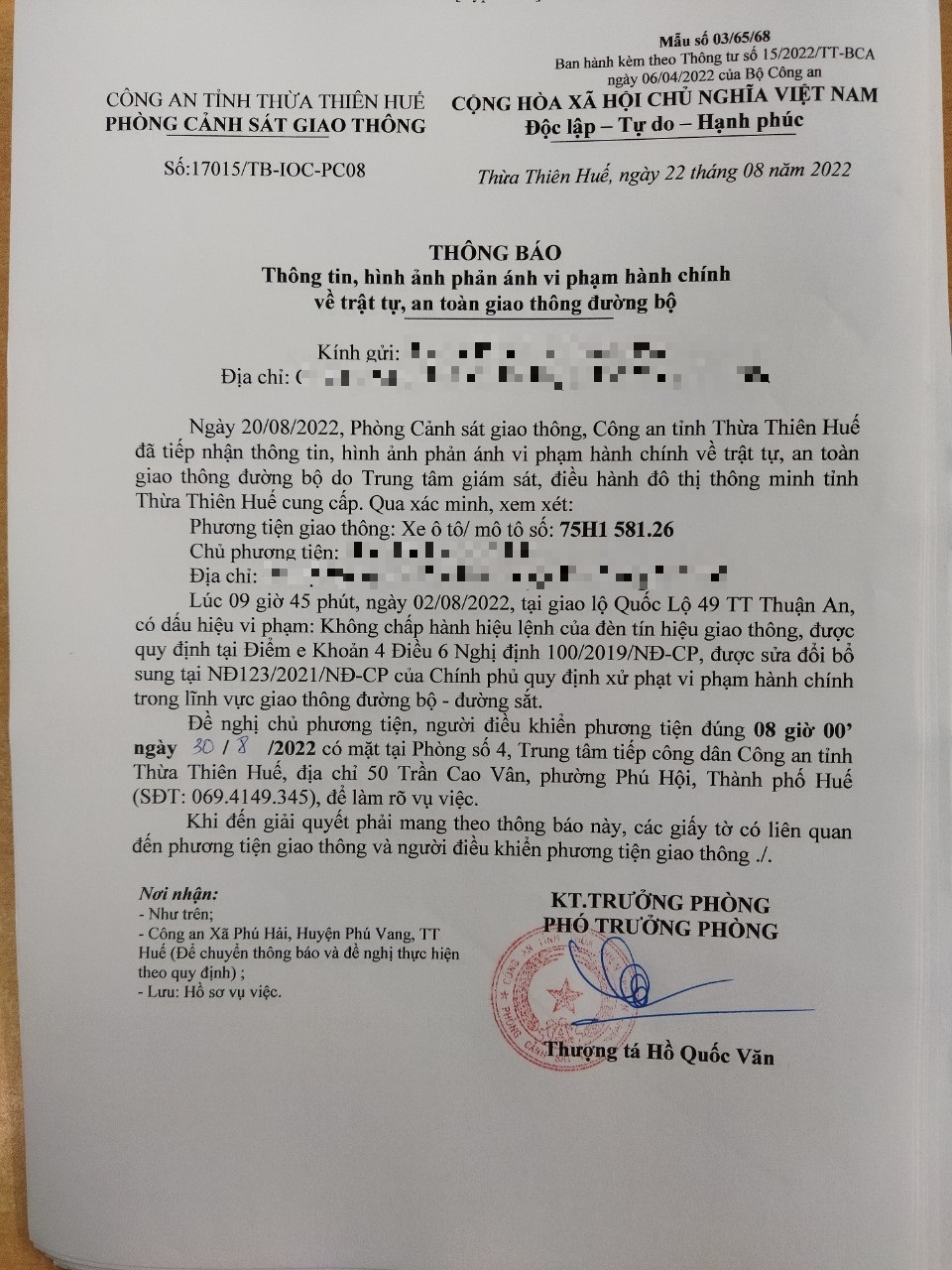 Phòng CSGT đã gửi thông báo, yêu cầu chủ phương tiện đến làm việc theo quy định của pháp luật. Tuy nhiên, đã quá ngày hẹn nhưng chủ phương tiện vẫn chưa đến làm việc theo yêu cầu. Phòng CSGT sẽ tiếp tục thông báo Công an địa phương nơi chủ phương tiện thường trú; đồng thời, thông báo các tổ tuần tra kiểm soát trên địa bàn, trong quá trình làm nhiệm vụ nếu phát hiện sẽ tiến hành dừng xe để xử lý.