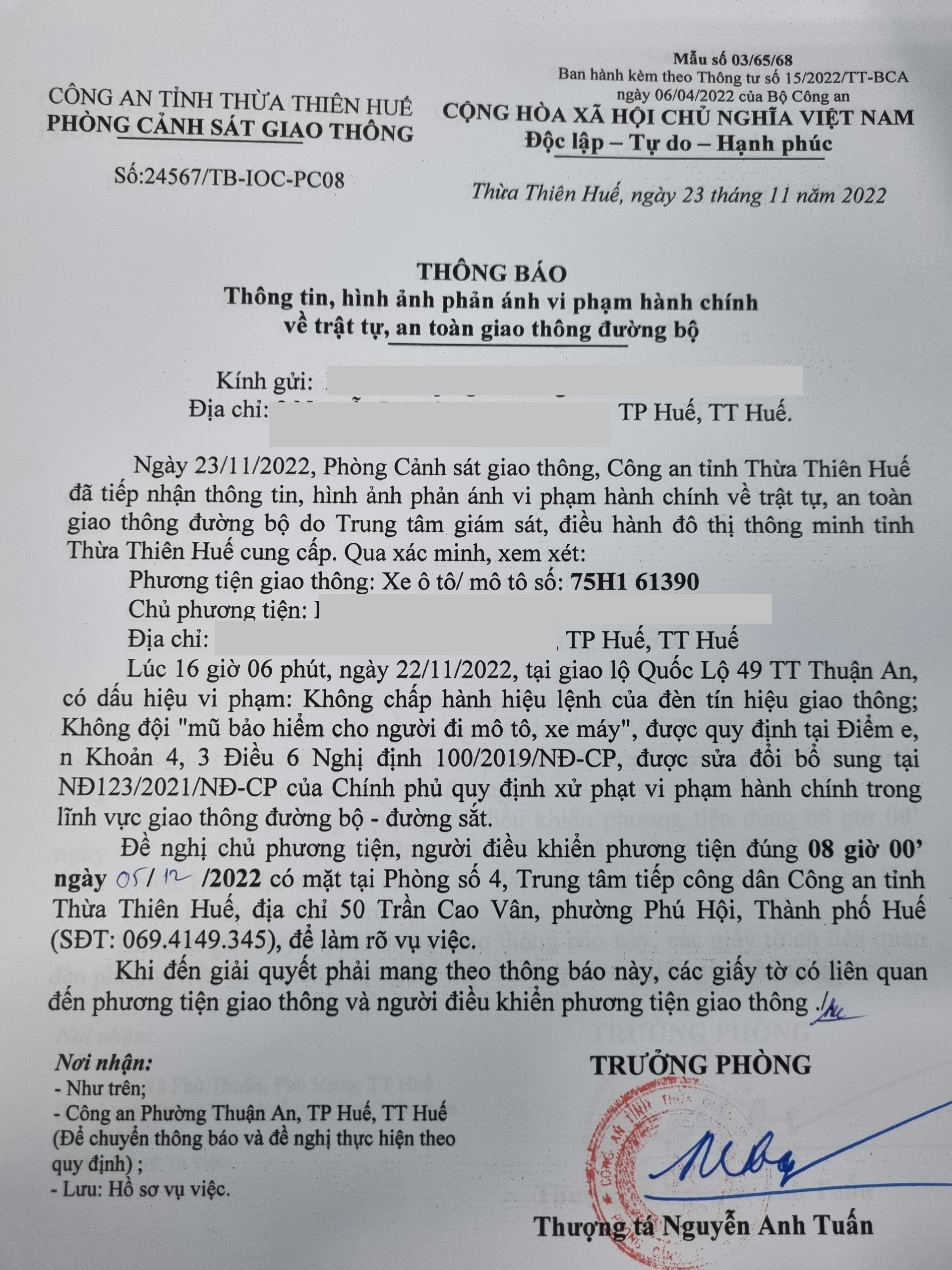 Vấn đề Ông/Bà phản ánh, Công an tỉnh đã chỉ đạo Phòng Cảnh sát giao thông xin thông báo kết quả xử lý như sau: