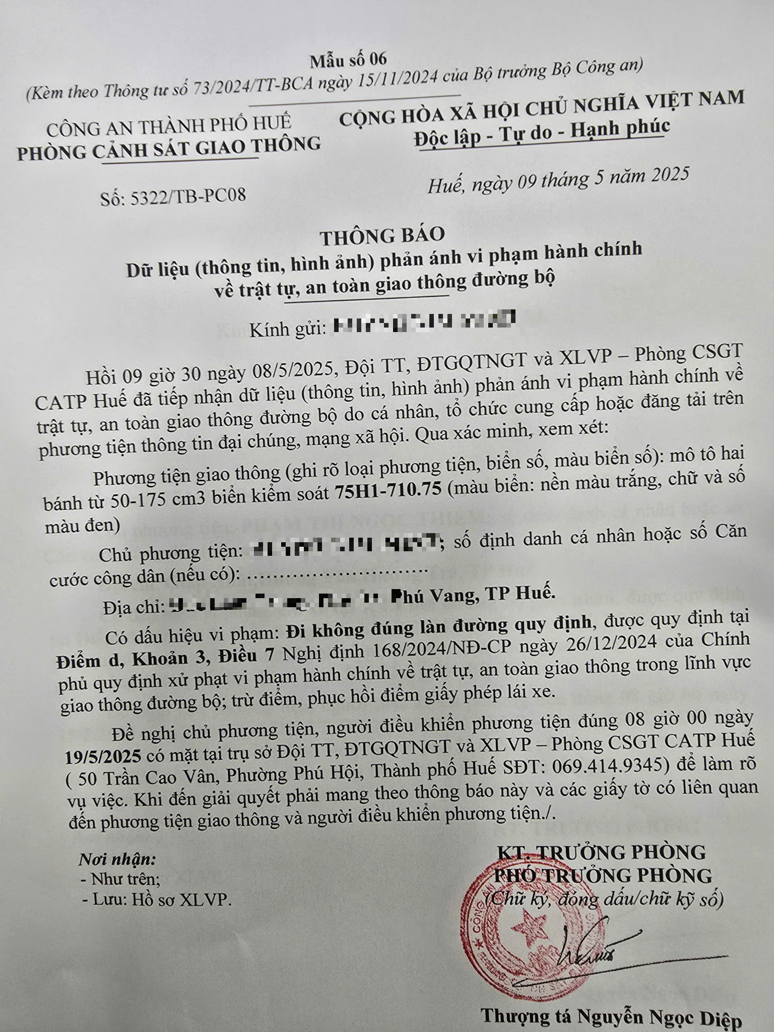 Vấn đề quý Ông/Bà phản ánh, Phòng Cảnh sát giao thông – Công an thành phố Huế đã kiểm tra và xin thông báo kết quả như sau: