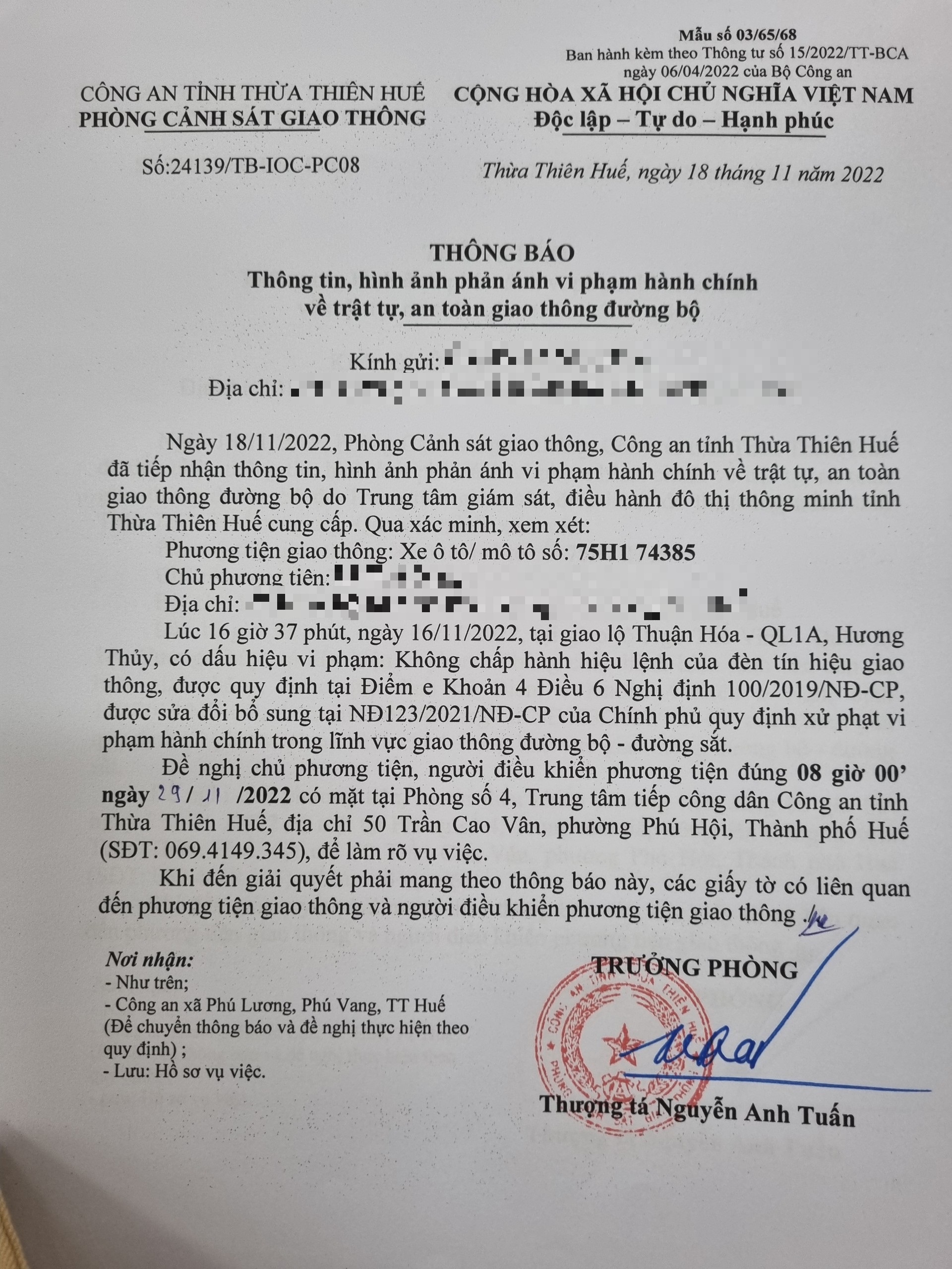Phòng CSGT đã gửi thông báo, yêu cầu chủ phương tiện đến làm việc theo quy định của pháp luật. Tuy nhiên, đã quá ngày hẹn nhưng chủ phương tiện vẫn chưa đến làm việc theo yêu cầu. Phòng CSGT sẽ tiếp tục thông báo Công an địa phương nơi chủ phương tiện thường trú; đồng thời, thông báo các tổ tuần tra kiểm soát trên địa bàn, trong quá trình làm nhiệm vụ nếu phát hiện sẽ tiến hành dừng xe để xử lý.