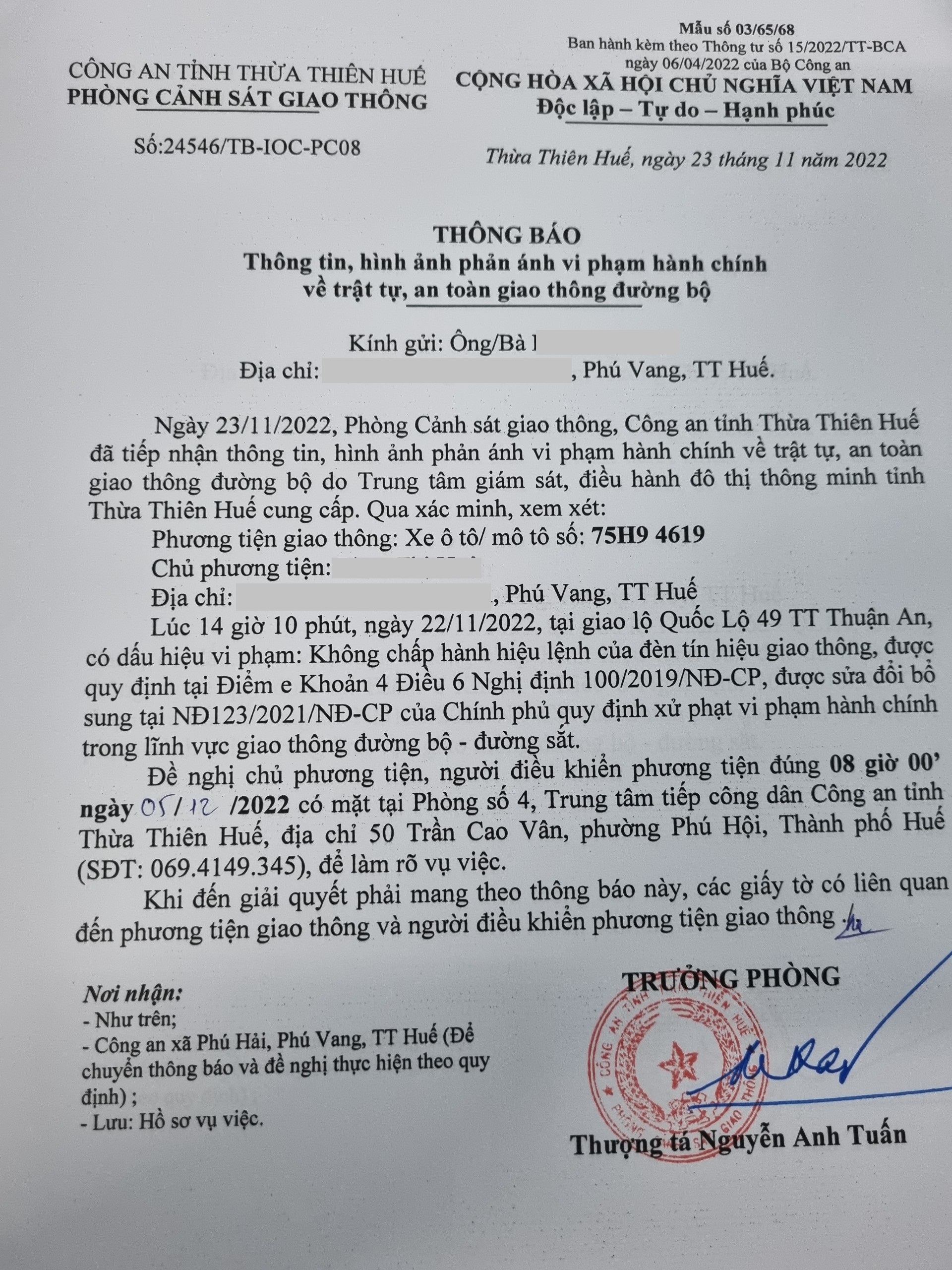 Vấn đề Ông/Bà phản ánh, Công an tỉnh đã chỉ đạo Phòng Cảnh sát giao thông xin thông báo kết quả xử lý như sau: