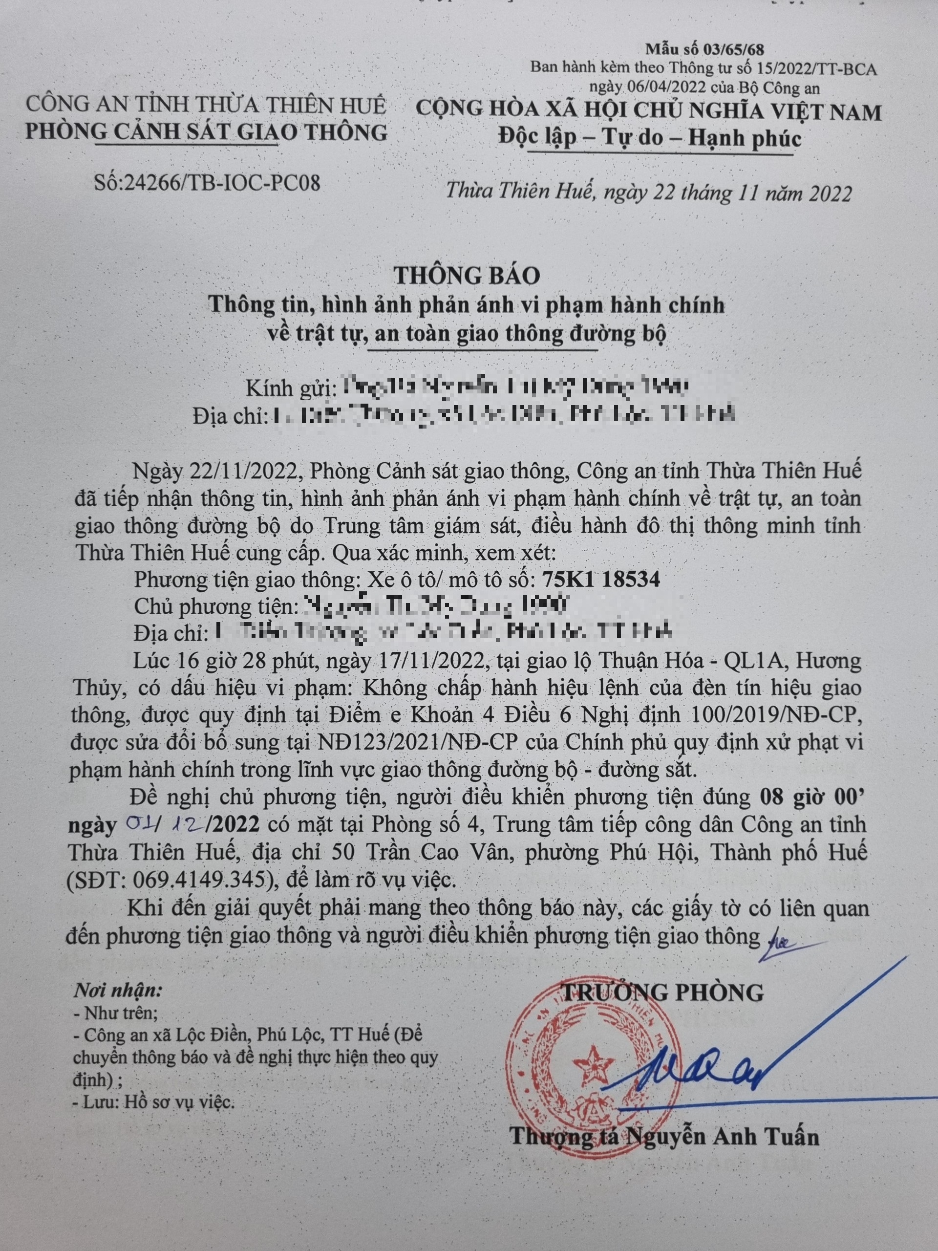 Vấn đề Ông/Bà phản ánh, Công an tỉnh đã chỉ đạo Phòng Cảnh sát giao thông xin thông báo kết quả xử lý như sau: