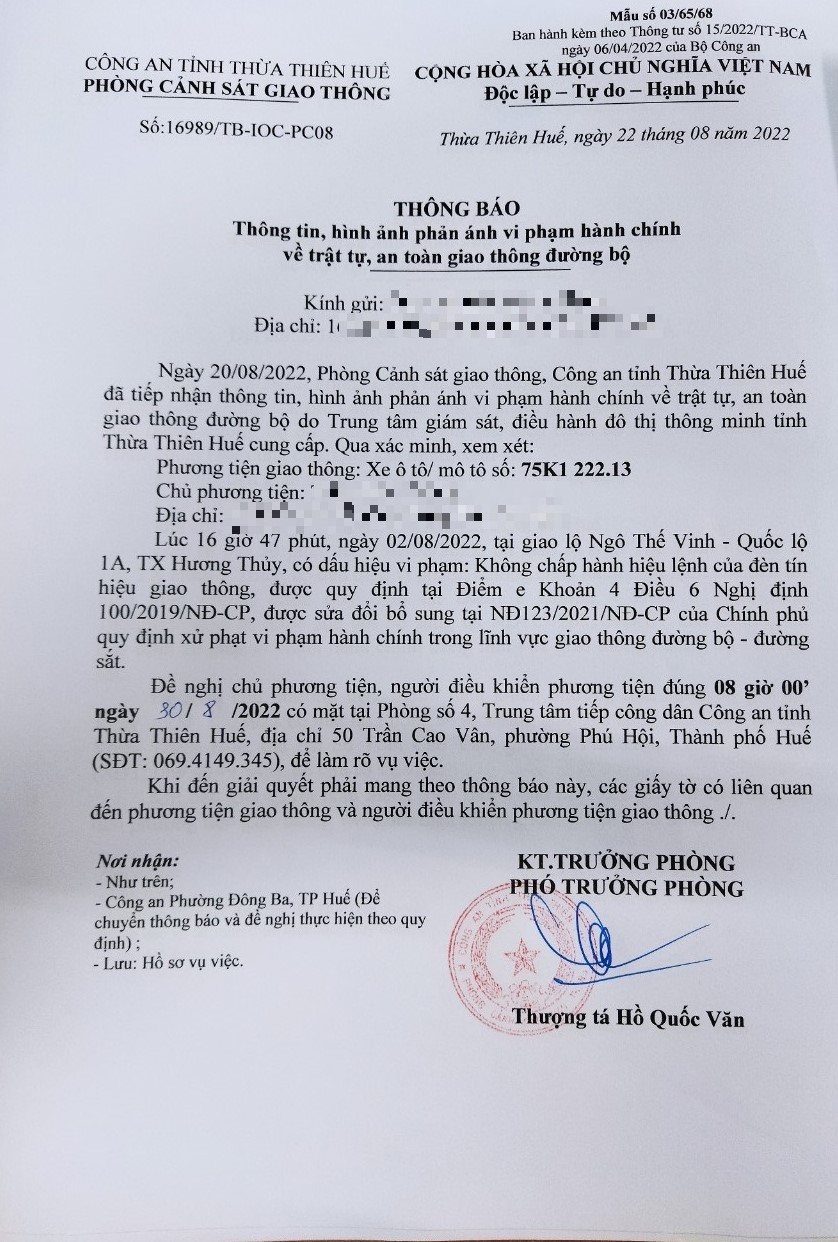 Vấn đề Ông/Bà phản ánh, Công an tỉnh đã chỉ đạo Phòng Cảnh sát giao thông xin thông báo kết quả xử lý như sau: