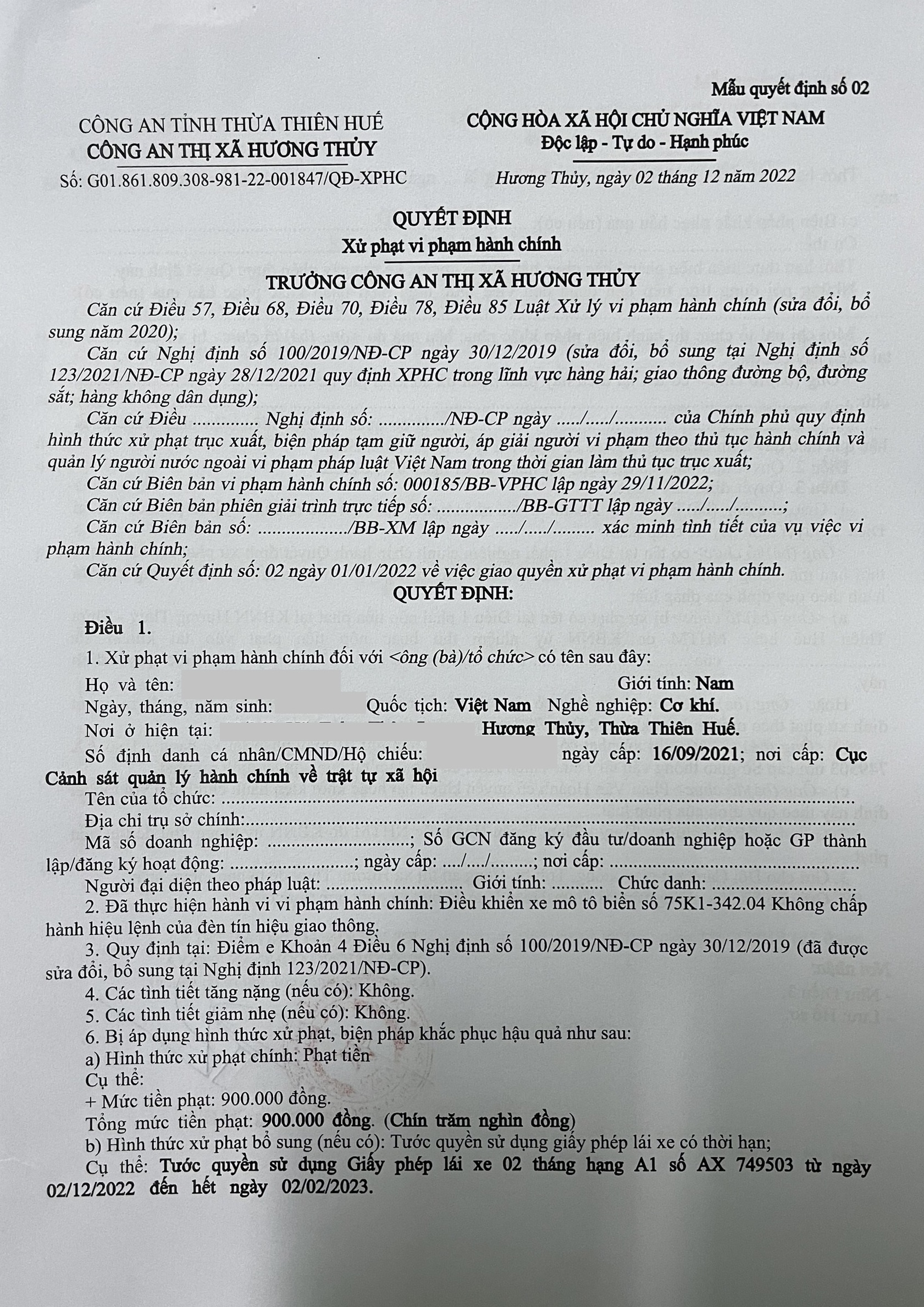Vấn đề quý Ông/Bà phản ánh, Công an tỉnh đã chỉ đạo Công an thị xã Hương Thuỷ kiểm tra và xin thông báo kết quả xử lý như sau: