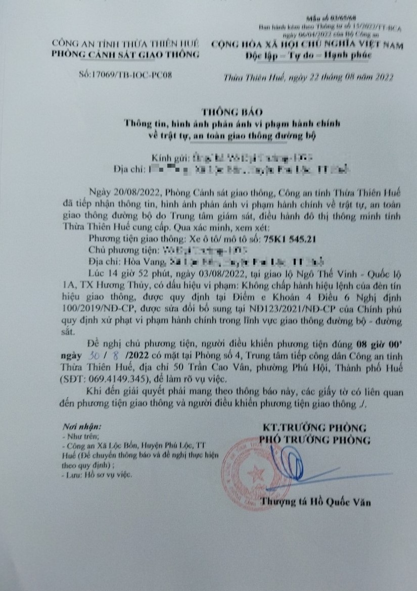 Vấn đề Ông/Bà phản ánh, Công an tỉnh đã chỉ đạo Phòng Cảnh sát giao thông xin thông báo kết quả xử lý như sau: