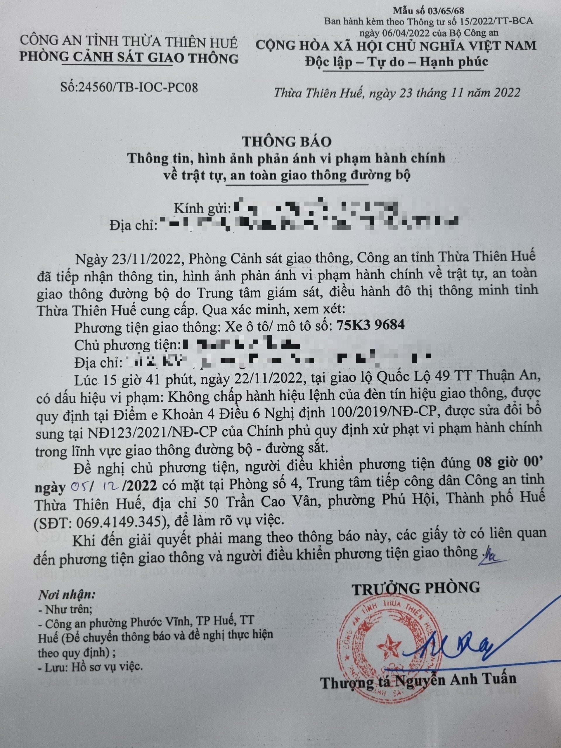 Vấn đề Ông/Bà phản ánh, Công an tỉnh đã chỉ đạo Phòng Cảnh sát giao thông xin thông báo kết quả xử lý như sau:
