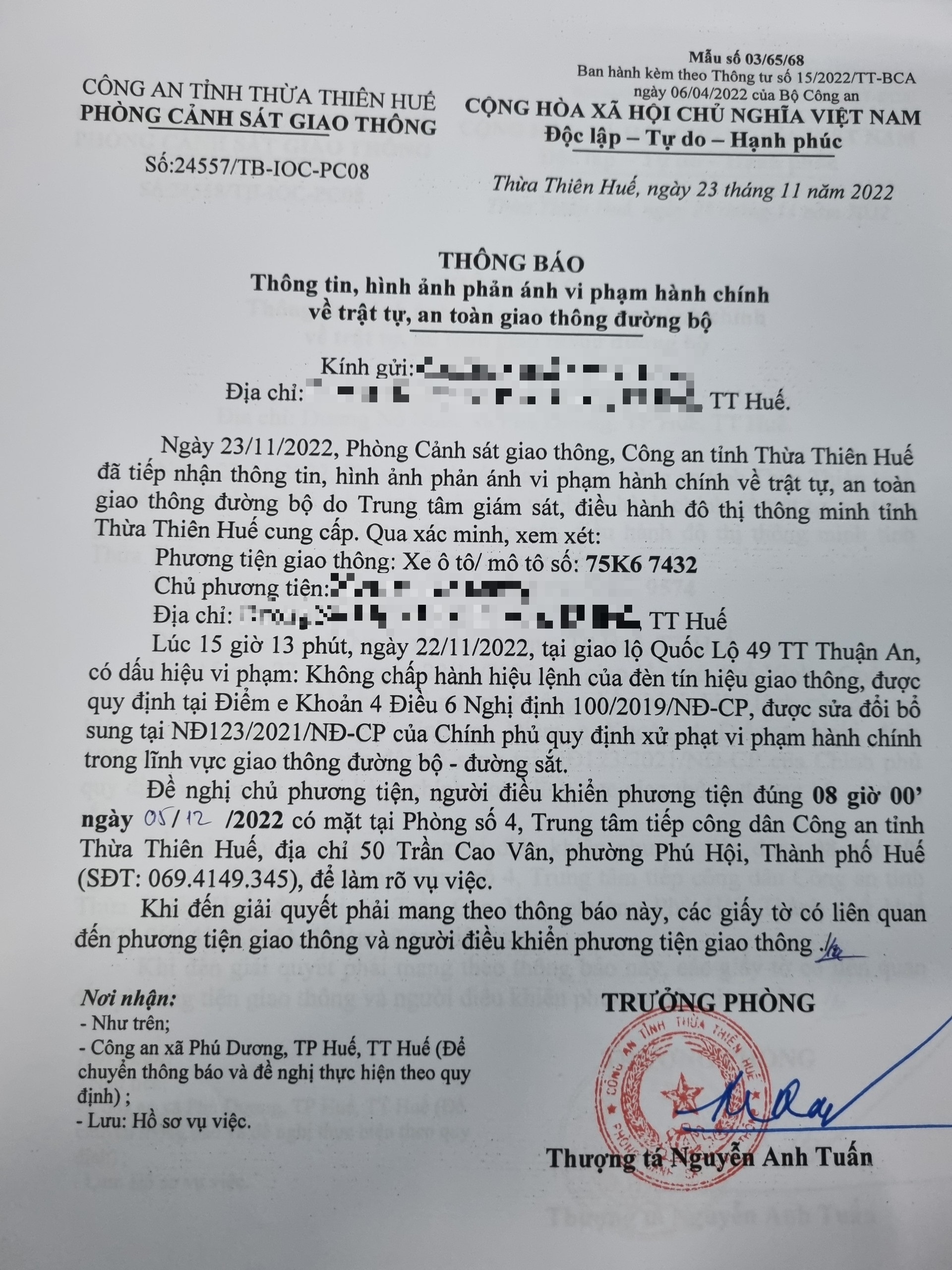 Phòng CSGT đã gửi thông báo, yêu cầu chủ phương tiện đến làm việc theo quy định của pháp luật. Tuy nhiên, đã quá ngày hẹn nhưng chủ phương tiện vẫn chưa đến làm việc theo yêu cầu. Phòng CSGT sẽ tiếp tục thông báo Công an địa phương nơi chủ phương tiện thường trú; đồng thời, thông báo các tổ tuần tra kiểm soát trên địa bàn, trong quá trình làm nhiệm vụ nếu phát hiện sẽ tiến hành dừng xe để xử lý.