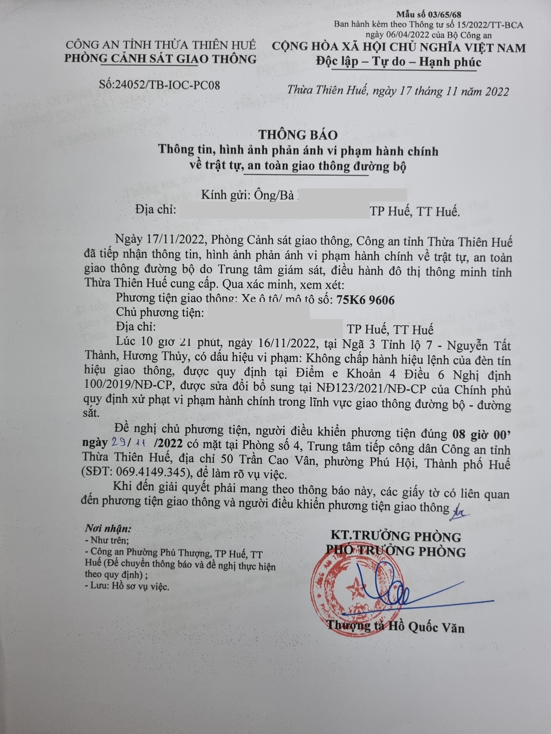 Vấn đề Ông/Bà phản ánh, Công an tỉnh đã chỉ đạo Phòng Cảnh sát giao thông xin thông báo kết quả xử lý như sau: