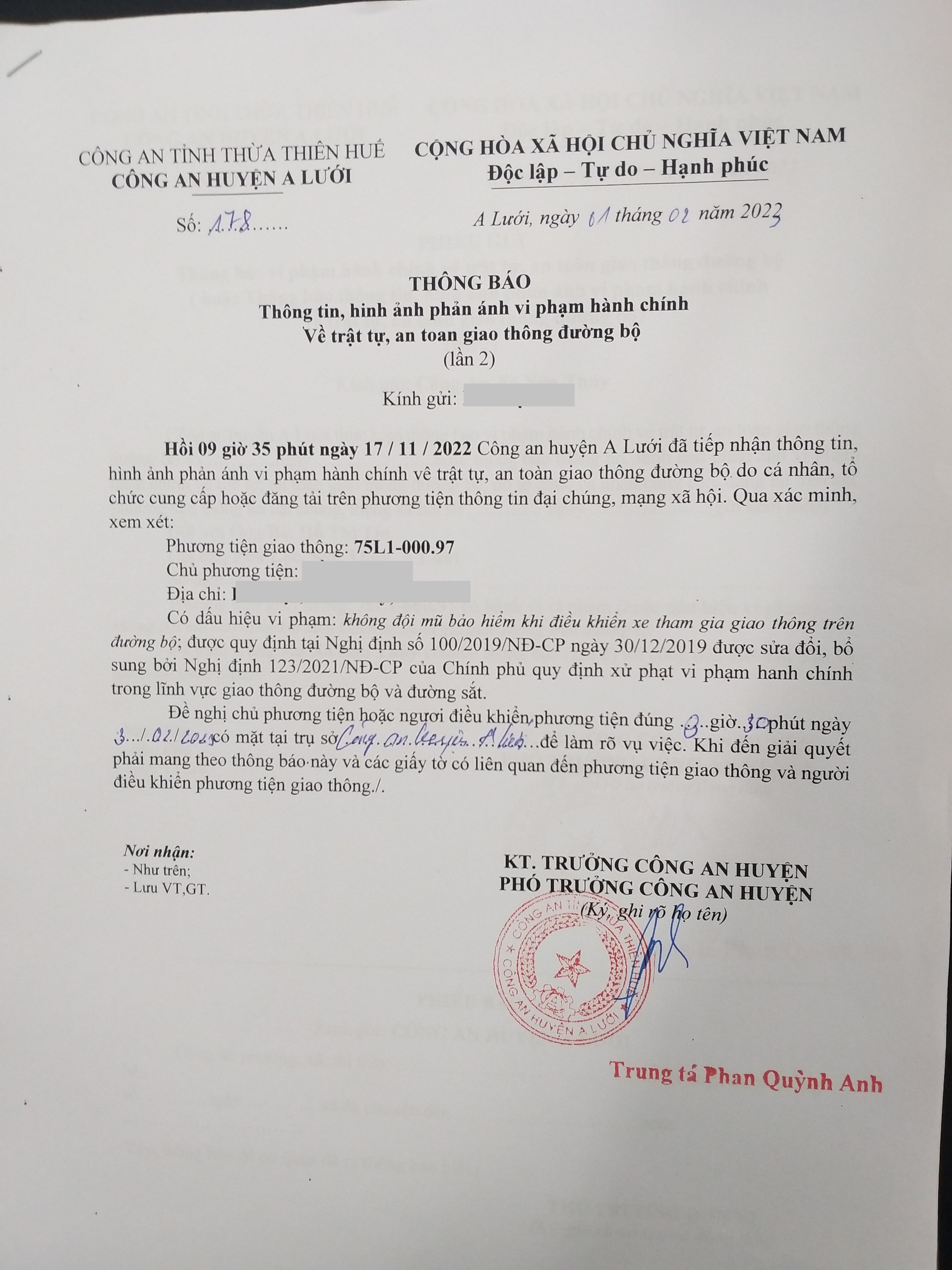 Vấn đề Ông/Bà phản ánh, Công an tỉnh đã chỉ đạo Công an huyện A Lưới kiểm tra và xin thông báo kết quả xử lý như sau:
