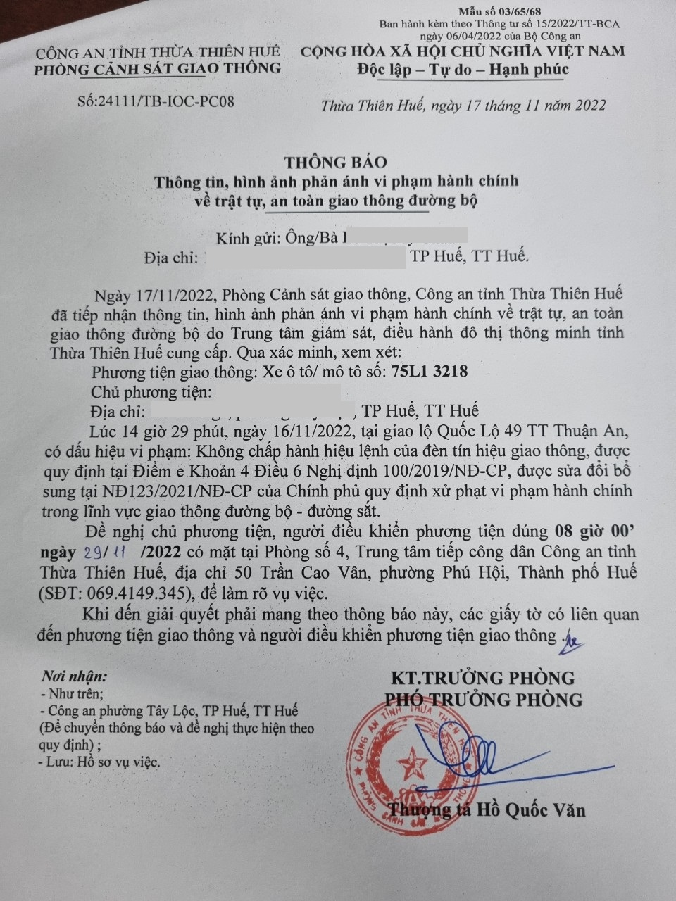 Vấn đề Ông/Bà phản ánh, Công an tỉnh đã chỉ đạo Phòng Cảnh sát giao thông xin thông báo kết quả xử lý như sau: