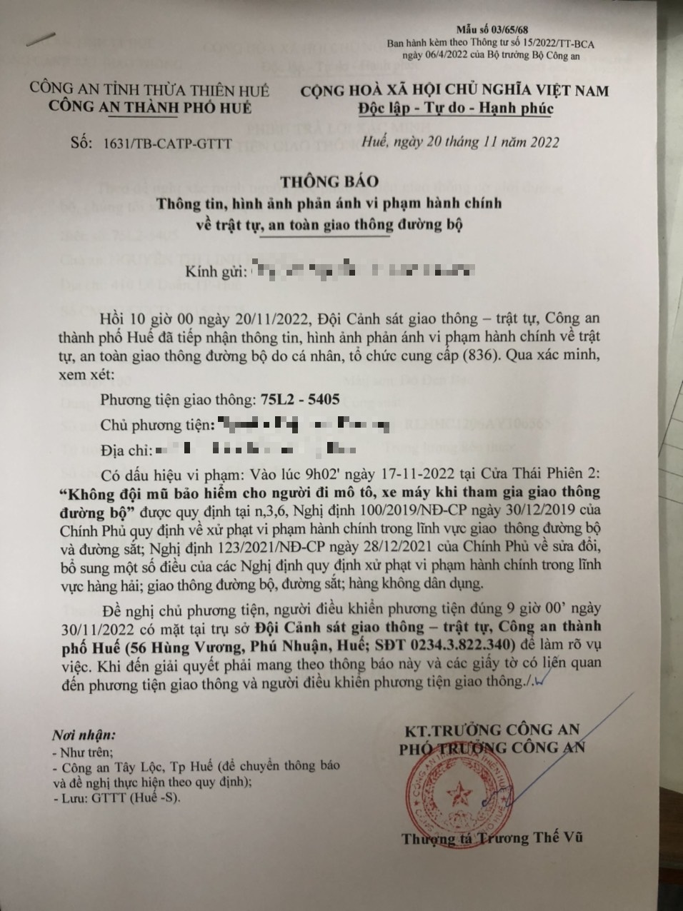 Vấn đề Ông/Bà phản ánh, Công an tỉnh đã chỉ đạo Công an thành phố Huế kiểm tra và xin thông báo kết quả xử lý như sau: