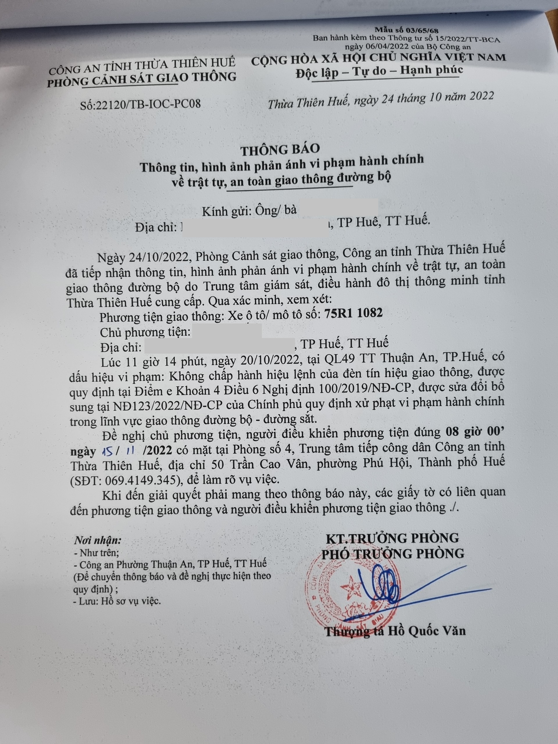 Vấn đề Ông/Bà phản ánh, Công an tỉnh đã chỉ đạo Phòng Cảnh sát giao thông xin thông báo kết quả xử lý như sau:
