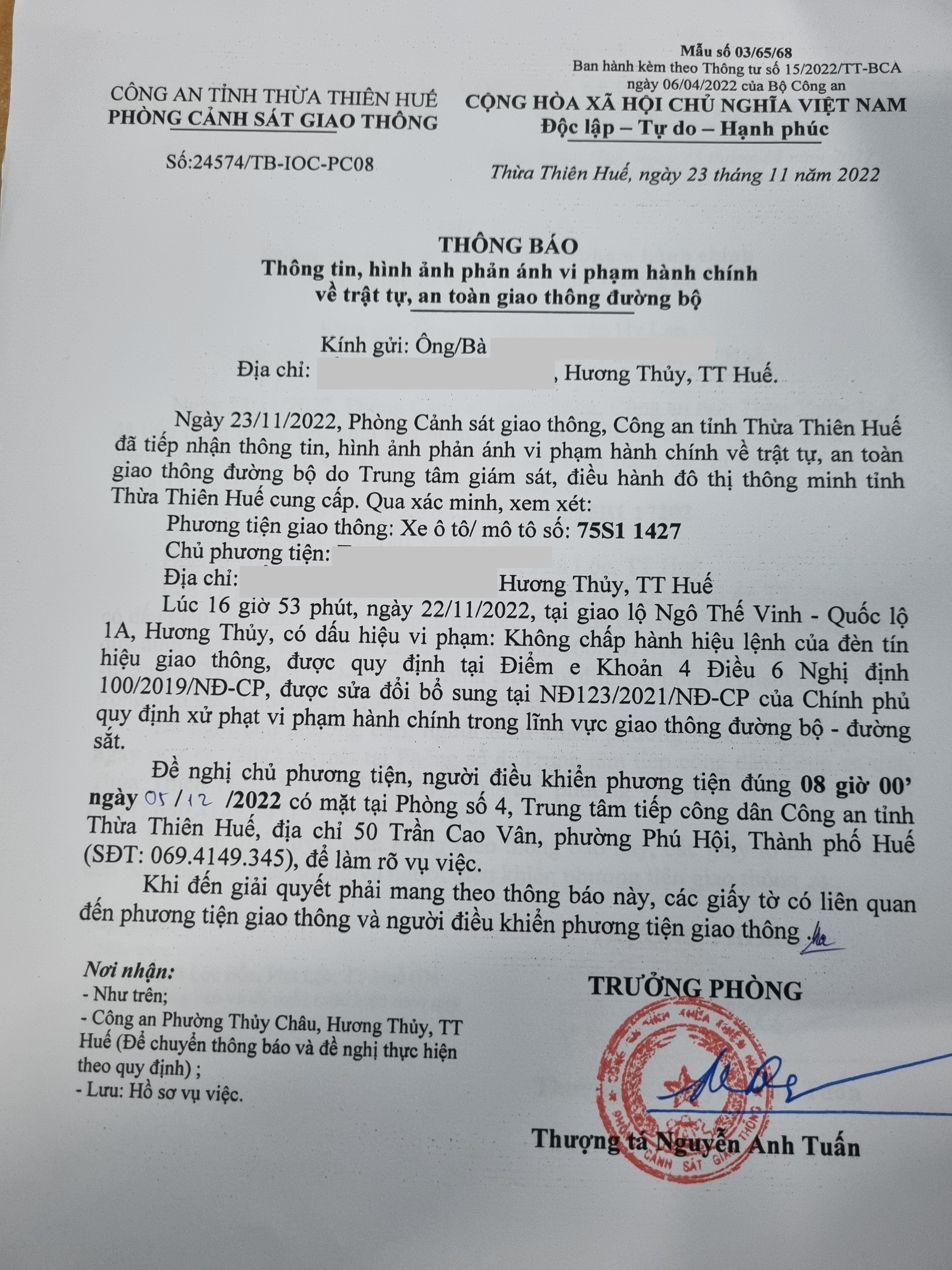 Phòng CSGT đã gửi thông báo, yêu cầu chủ phương tiện đến làm việc theo quy định của pháp luật. Tuy nhiên, đã quá ngày hẹn nhưng chủ phương tiện vẫn chưa đến làm việc theo yêu cầu. Phòng CSGT sẽ tiếp tục thông báo Công an địa phương nơi chủ phương tiện thường trú; đồng thời, thông báo các tổ tuần tra kiểm soát trên địa bàn, trong quá trình làm nhiệm vụ nếu phát hiện sẽ tiến hành dừng xe để xử lý.