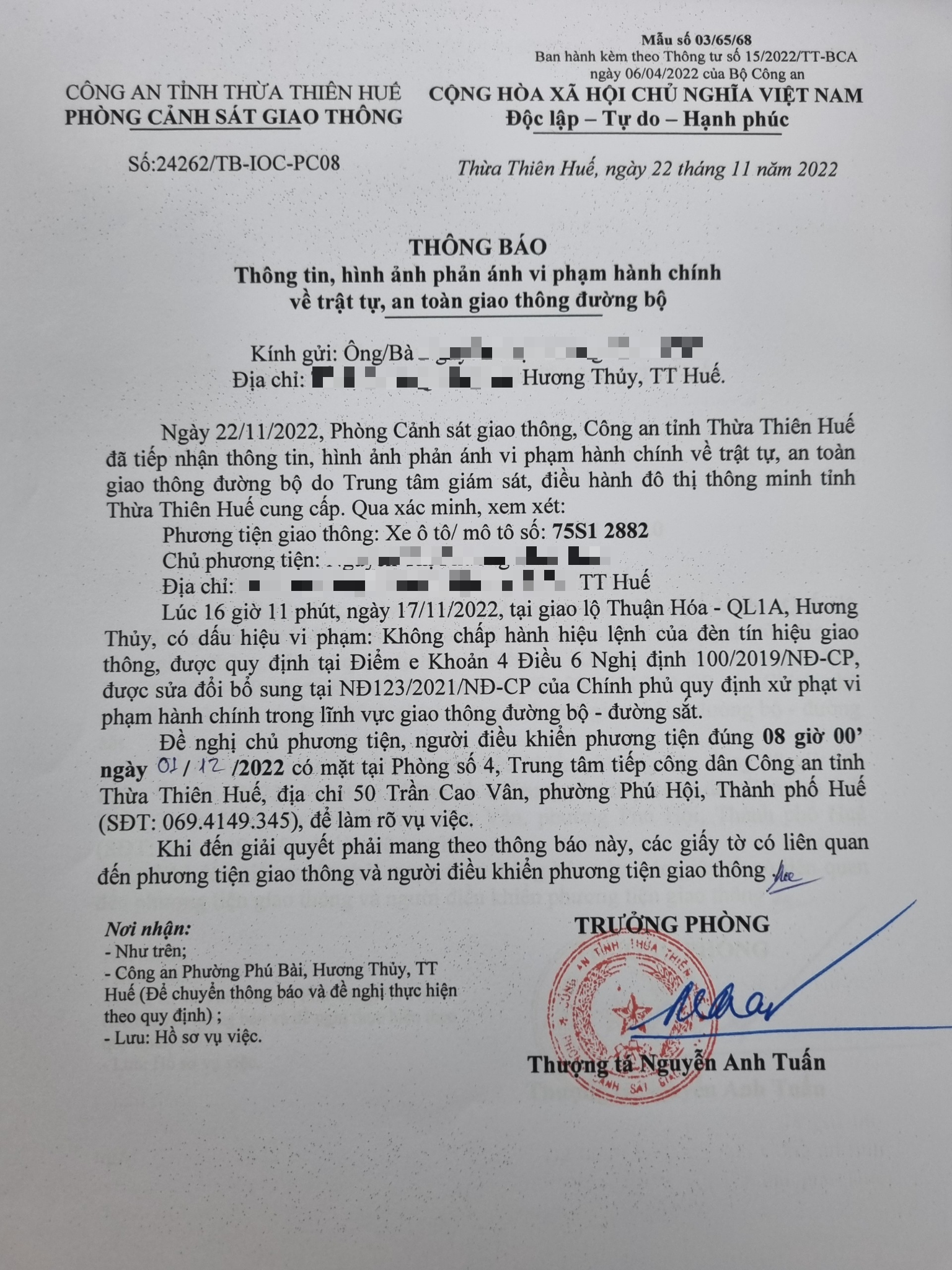 Phòng CSGT đã gửi thông báo, yêu cầu chủ phương tiện đến làm việc theo quy định của pháp luật. Tuy nhiên, đã quá ngày hẹn nhưng chủ phương tiện vẫn chưa đến làm việc theo yêu cầu. Phòng CSGT sẽ tiếp tục thông báo Công an địa phương nơi chủ phương tiện thường trú; đồng thời, thông báo các tổ tuần tra kiểm soát trên địa bàn, trong quá trình làm nhiệm vụ nếu phát hiện sẽ tiến hành dừng xe để xử lý.