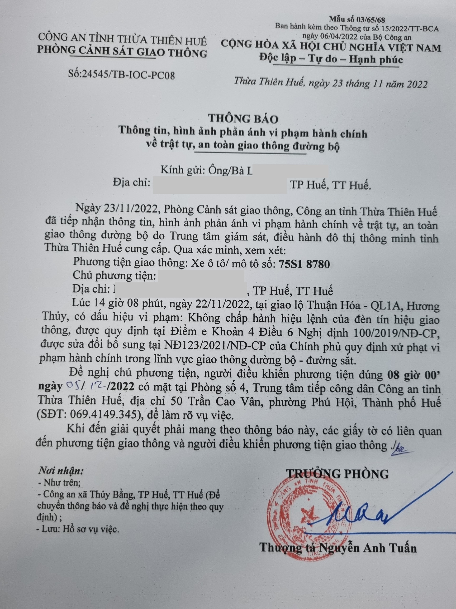 Vấn đề Ông/Bà phản ánh, Công an tỉnh đã chỉ đạo Phòng Cảnh sát giao thông xin thông báo kết quả xử lý như sau: