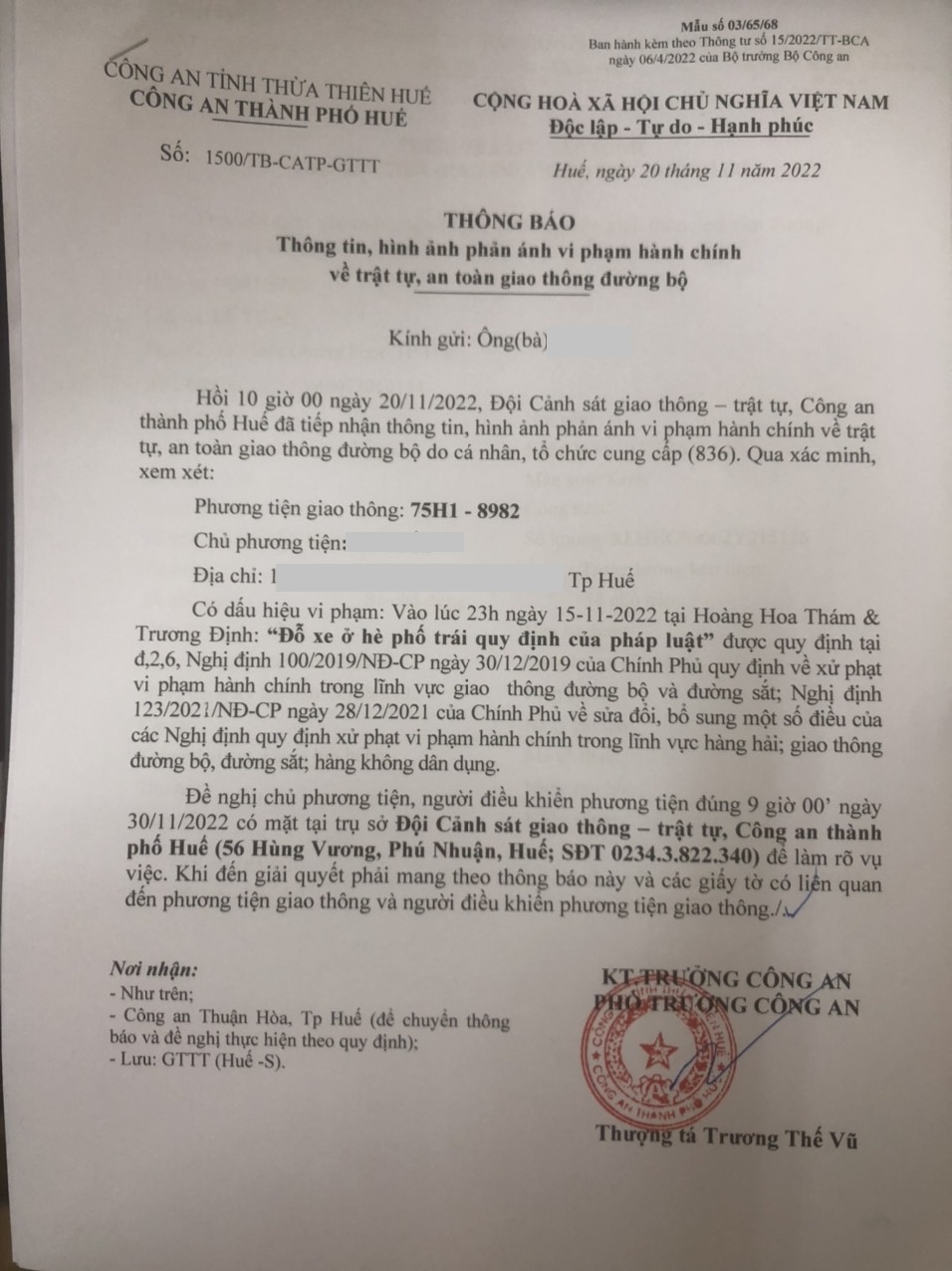 Vấn đề quý Ông/Bà phản ánh, Công an tỉnh đã chỉ đạo Công an thành phố Huế kiểm tra và xin thông báo kết quả xử lý như sau: