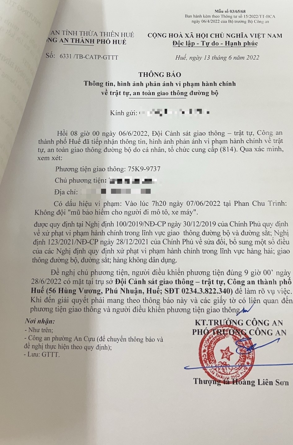 Vấn đề Ông/Bà phản ánh, Công an tỉnh đã chỉ đạo Công an thành phố Huế kiểm tra và trả lời như sau: