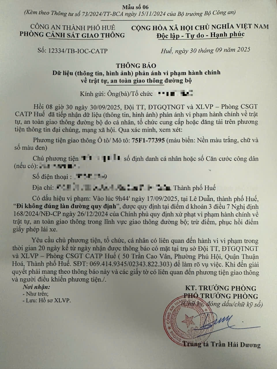 Vấn đề quý Ông/Bà phản ánh, Công an thành phố Huế đã chỉ đạo Phòng Cảnh sát giao thông kiểm tra và xin thông báo kết quả như sau: