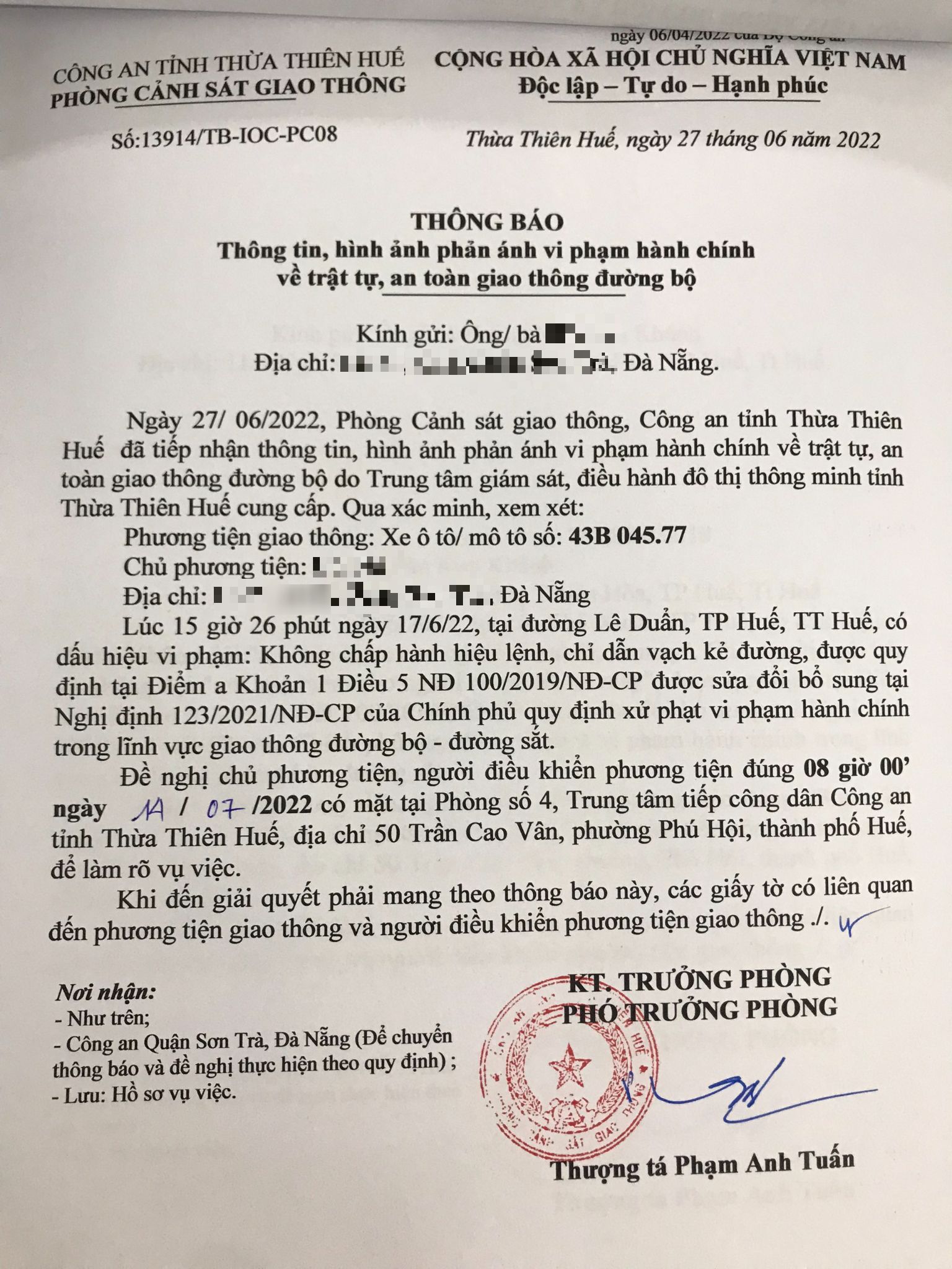 Vấn đề quý Ông/Bà phản ánh, Công an tỉnh đã chỉ đạo Phòng Cảnh sát giao thông xác minh và xin thông báo kết quả xử lý như sau: