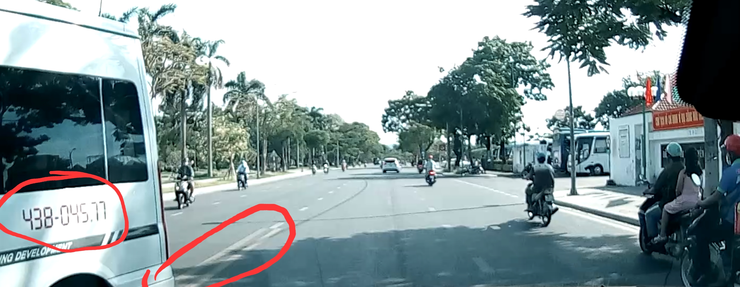 Xe ô tô mang BKS 43B04577 qua đường trước bến xe Nguyễn Hoàng cán lên 2 vạch vàng nối liền là vi phạm lỗi: Không chấp hành hiệu lệnh, chỉ dẫn vạch kẻ đường được quy định tại “điểm a, khoản 1, điều 5 NĐ 100/2019/NĐ-CP được sửa đổi bổ sung tại Nghị định 123/2021/NĐ-CP của Chính Phủ”.