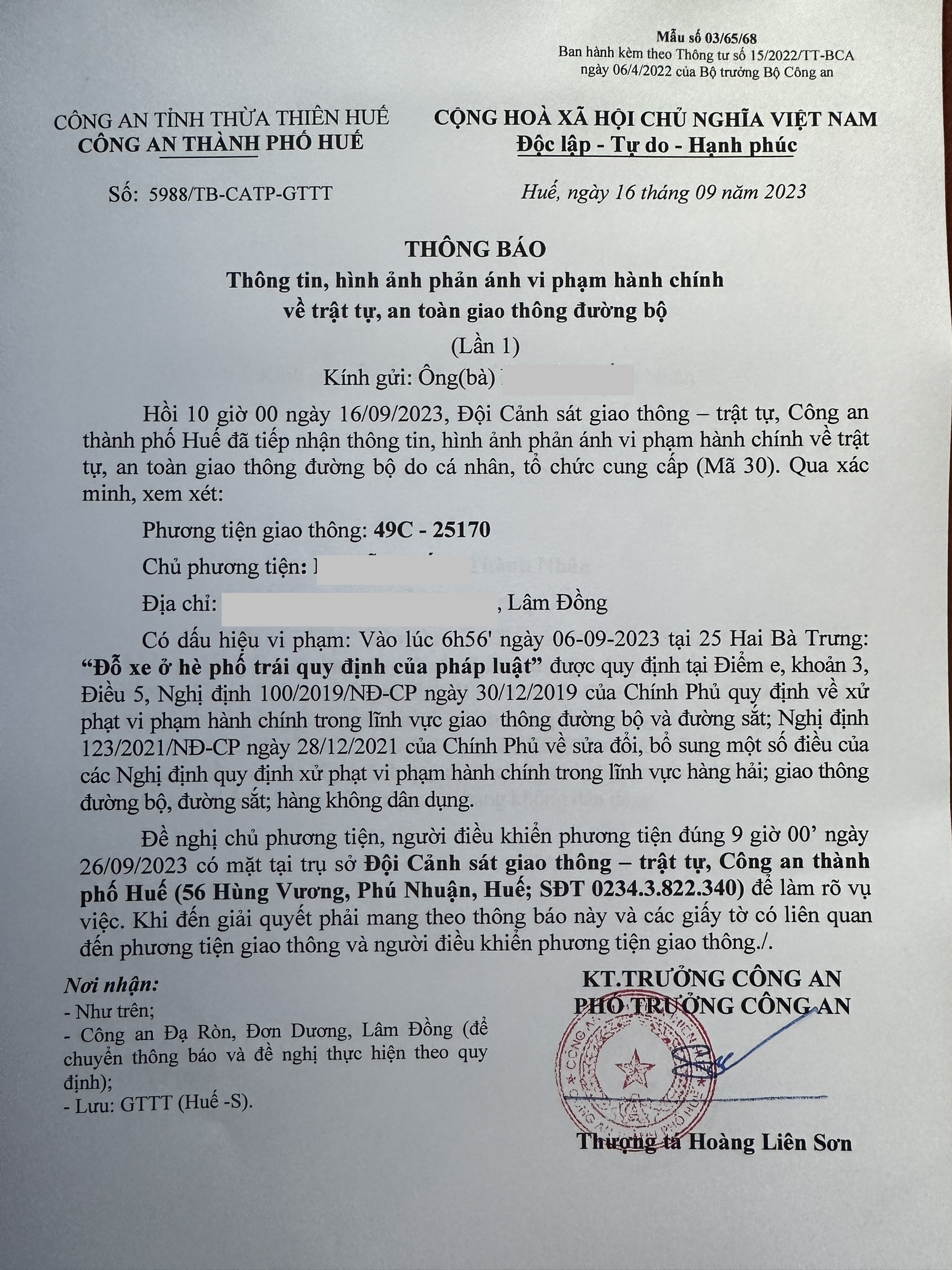 Vấn đề Ông/Bà phản ánh, Công an tỉnh đã chỉ đạo Công an thành phố Huế kiểm tra và xin thông báo kết quả xử lý như sau: