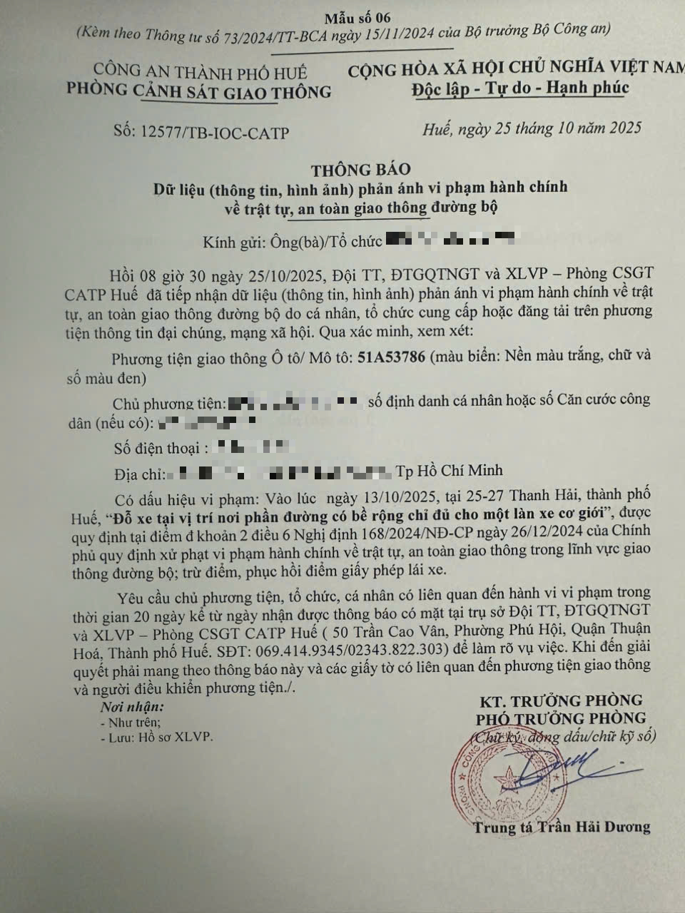 Vấn đề quý Ông/Bà phản ánh, Phòng Cảnh sát giao thông – Công an thành phố Huế đã kiểm tra và xin thông báo kết quả như sau: