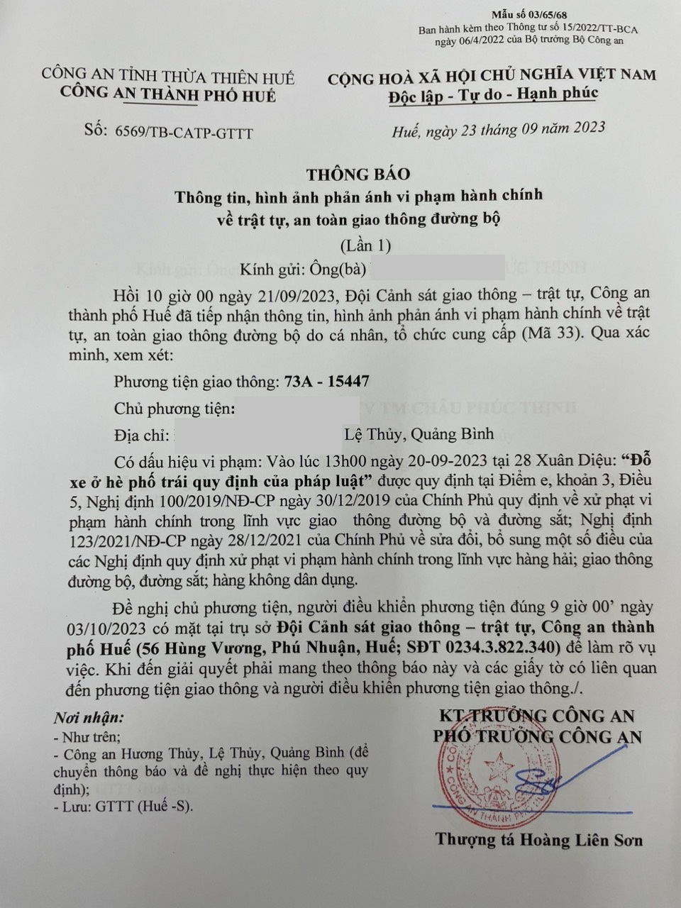 Vấn đề quý Ông/Bà phản ánh, Công an tỉnh đã chỉ đạo Công an thành phố Huế kiểm tra và xin thông báo kết quả như sau: