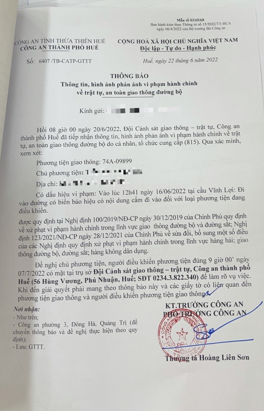 Vấn đề Ông/Bà phản ánh, Công an tỉnh đã chỉ đạo Công an thành phố Huế kiểm tra và trả lời như sau: