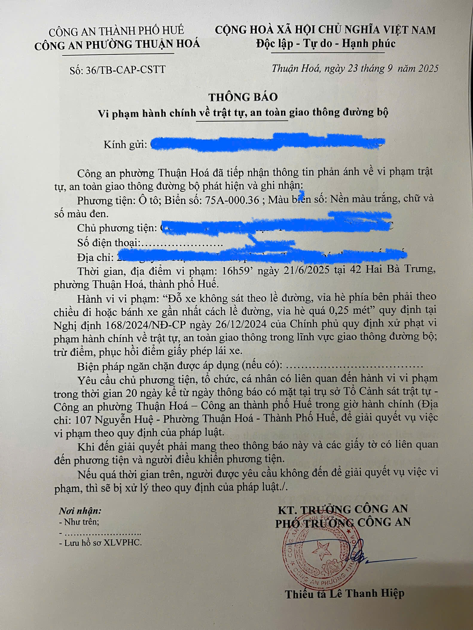 Công an phường Thuận Hóa đã lập hồ sơ, thông báo chủ phương tiện đến làm việc. Nếu quá ngày hẹn mà chủ phương tiện vẫn chưa đến trình diện tại cơ quan. Công an phường Thuận Hóa sẽ gửi thông báo cho cơ quan đăng kiểm để đưa phương tiện vào cảnh báo trên Chương trình Quản lý kiểm định.