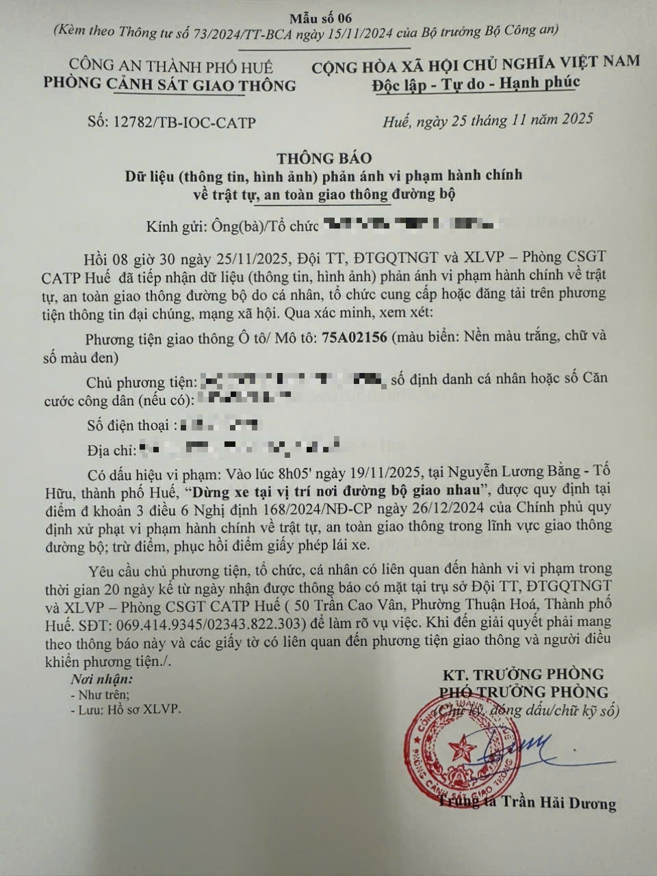 Vấn đề quý Ông/Bà phản ánh, Phòng Cảnh sát giao thông – Công an thành phố Huế đã kiểm tra và xin thông báo kết quả như sau: