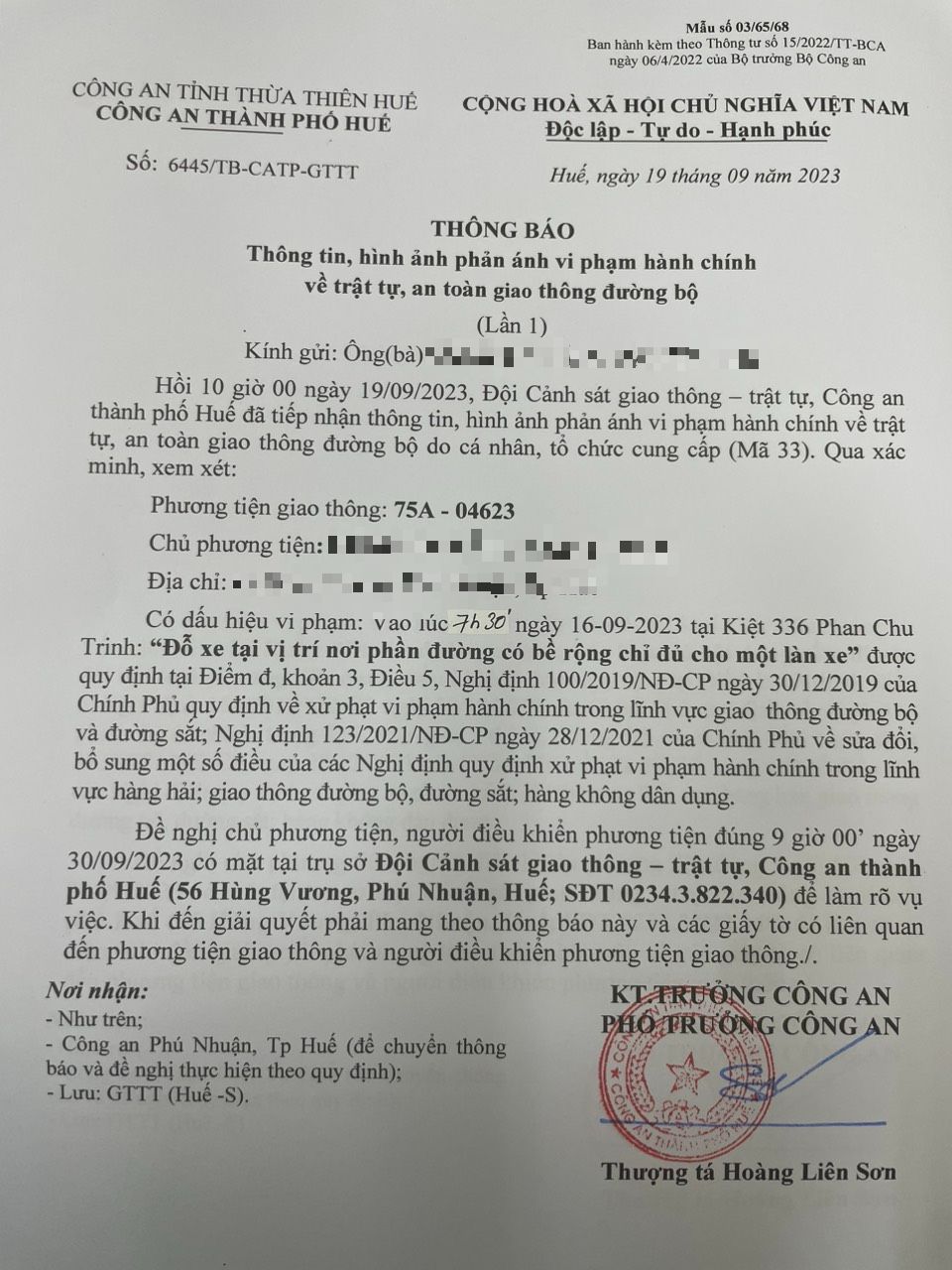 Công an thành phố cập nhật Quyết định xử phạt. (Đính kèm QĐ)
