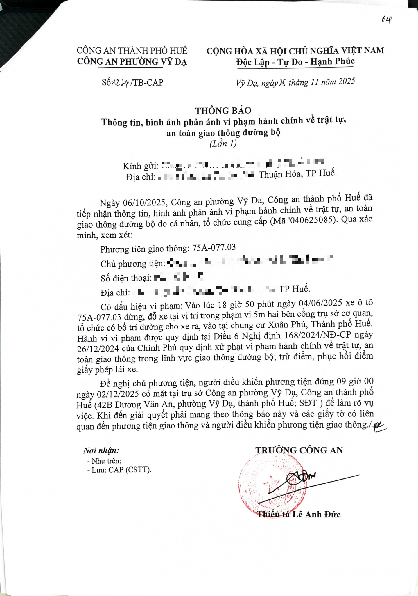 Vấn đề quý Ông/Bà phản ánh, Công an thành phố Huế đã chỉ đạo Công an phường Vỹ Dạ kiểm tra và xin thông báo kết quả như sau: