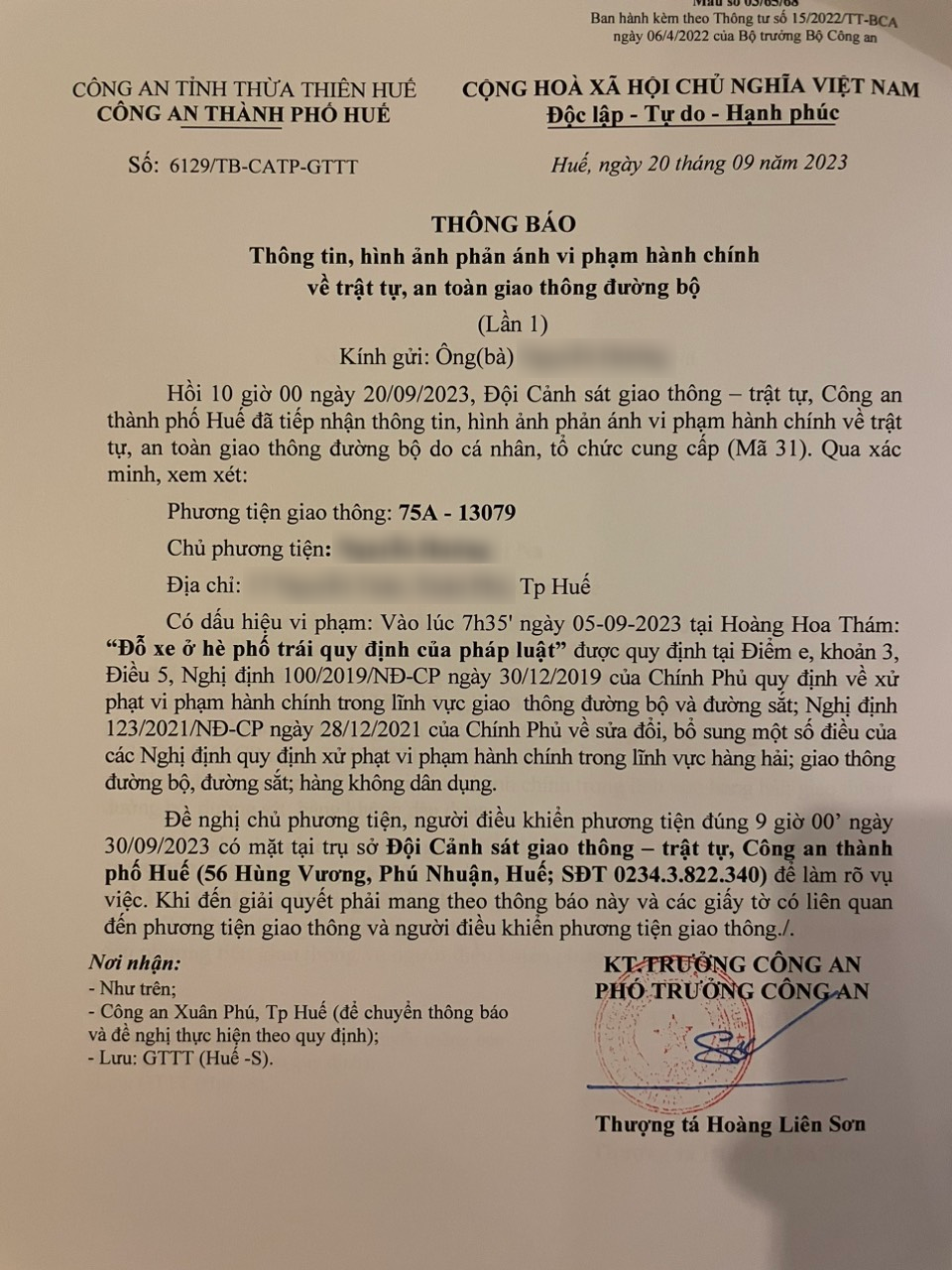 Vấn đề Ông/Bà phản ánh, Công an tỉnh đã chỉ đạo Công an thành phố Huế xin thông báo kết quả xử lý như sau: