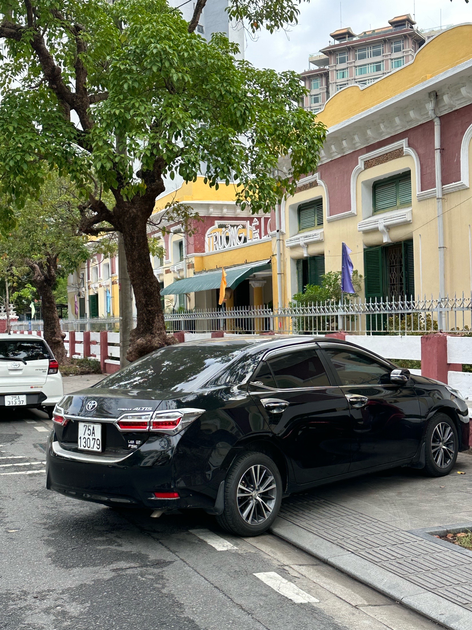 Từ hình ảnh được cung cấp, xác định người điều khiển phương tiện 75A13079 vi phạm lỗi: Đỗ xe ở hè phố trái quy định của pháp luật (quy định tại điểm e, Khoản 3, Điều 5 Nghị định 100/2019/NĐ-CP; sửa đổi, bổ sung tại Nghị định 123/2021/NĐ-CP).