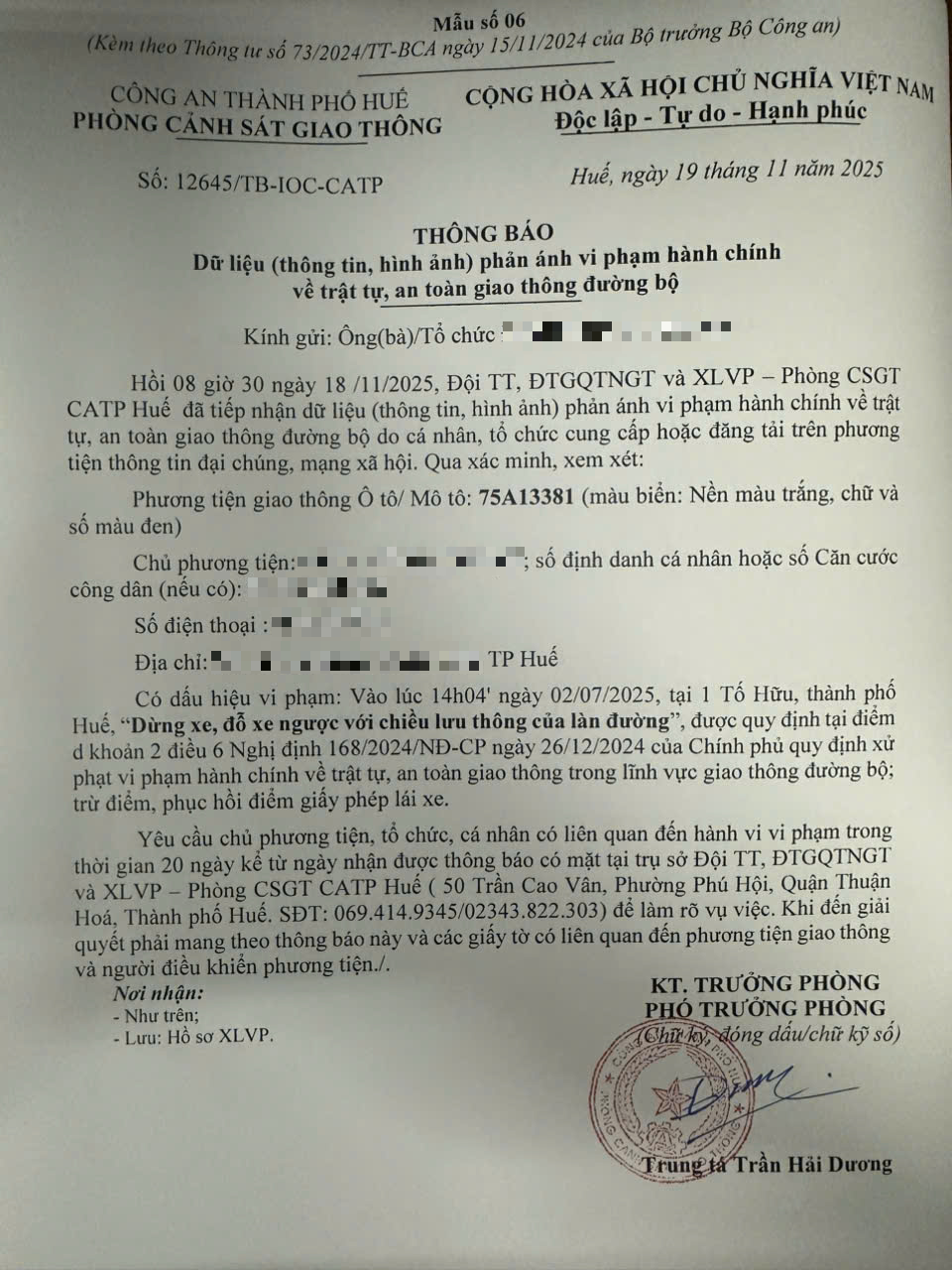 Vấn đề quý Ông/Bà phản ánh, Phòng Cảnh sát giao thông – Công an thành phố Huế đã kiểm tra và xin thông báo kết quả như sau: