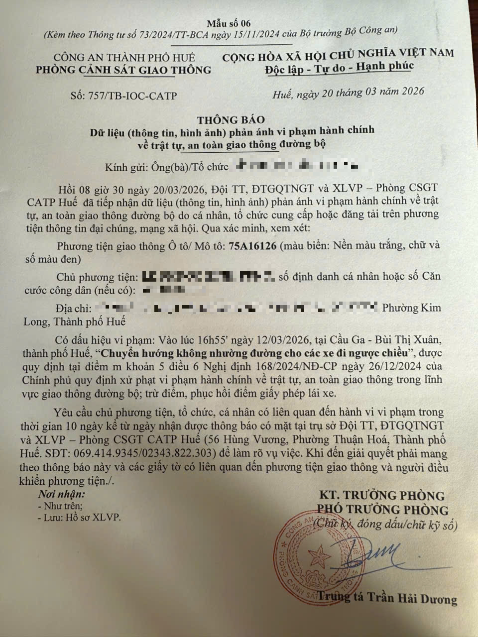 Vấn đề quý Ông/Bà phản ánh, Công an thành phố Huế đã chỉ đạo Phòng Cảnh sát giao thông kiểm tra và trả lời như sau:
