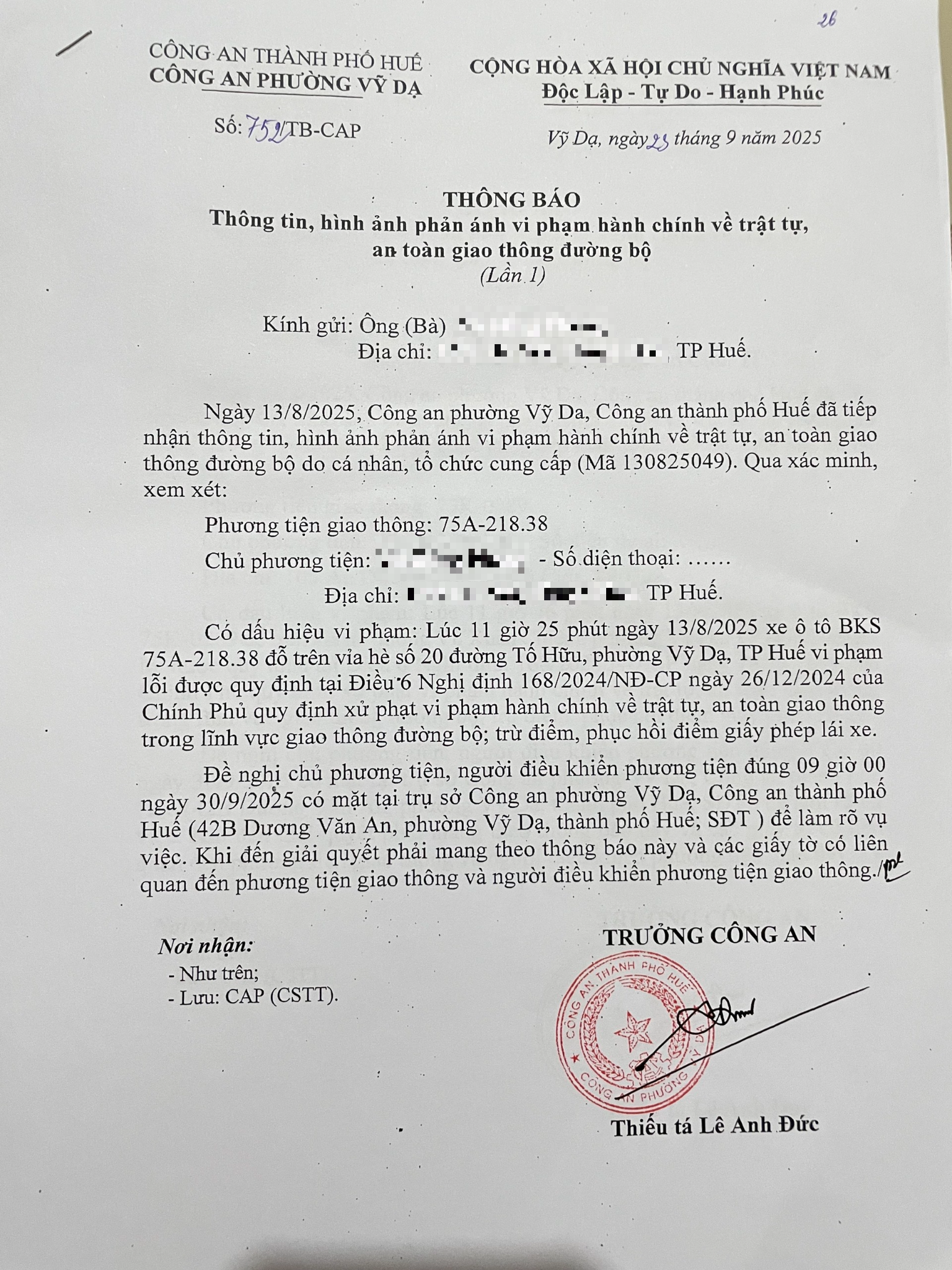 Vấn đề quý Ông/Bà phản ánh, Công an thành phố Huế đã chỉ đạo Công an phường Vỹ Dạ kiểm tra và xin thông báo kết quả như sau: