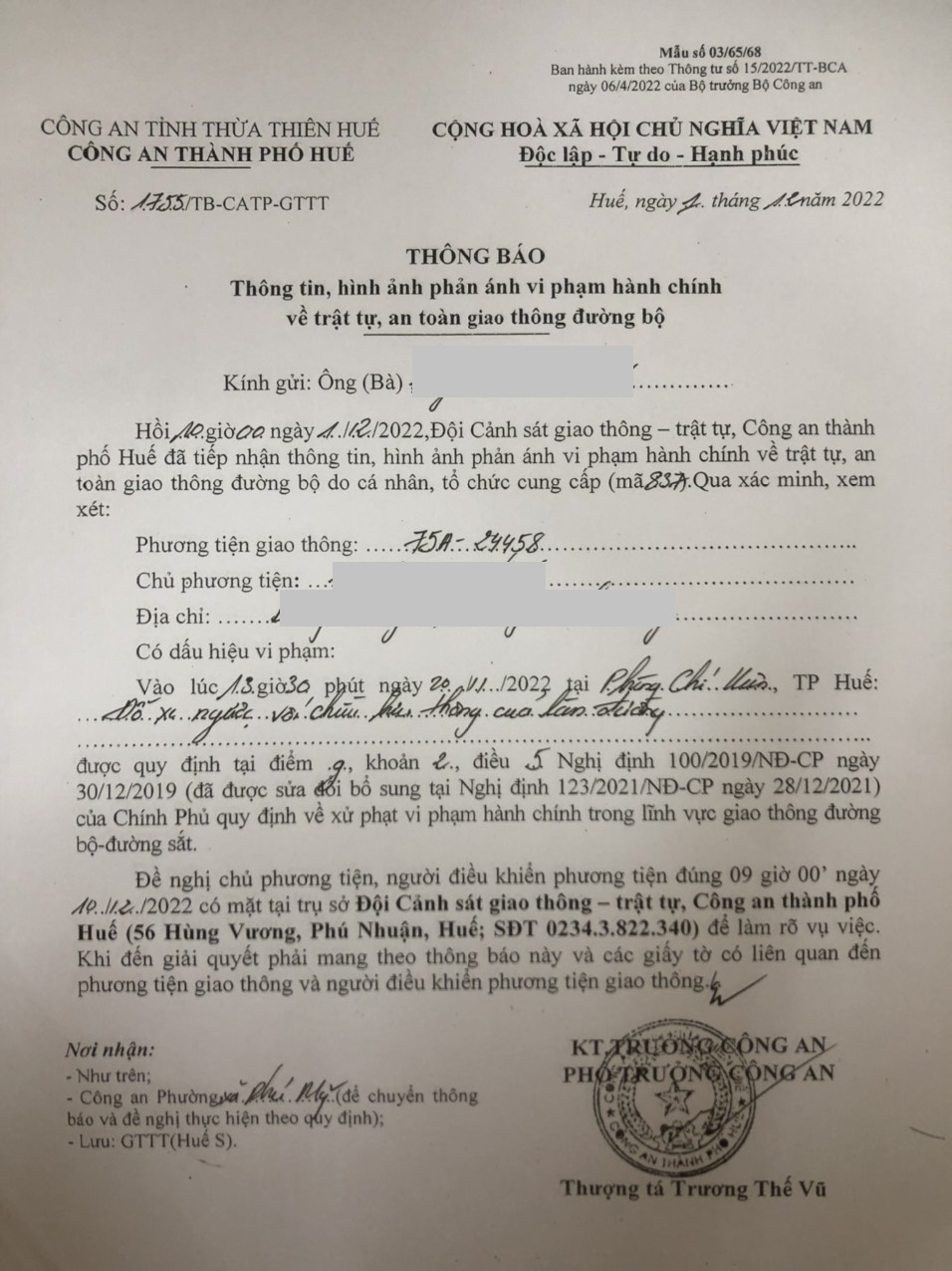 Công an thành phố cập nhật Quyết định xử phạt. (Đính kèm QĐ)