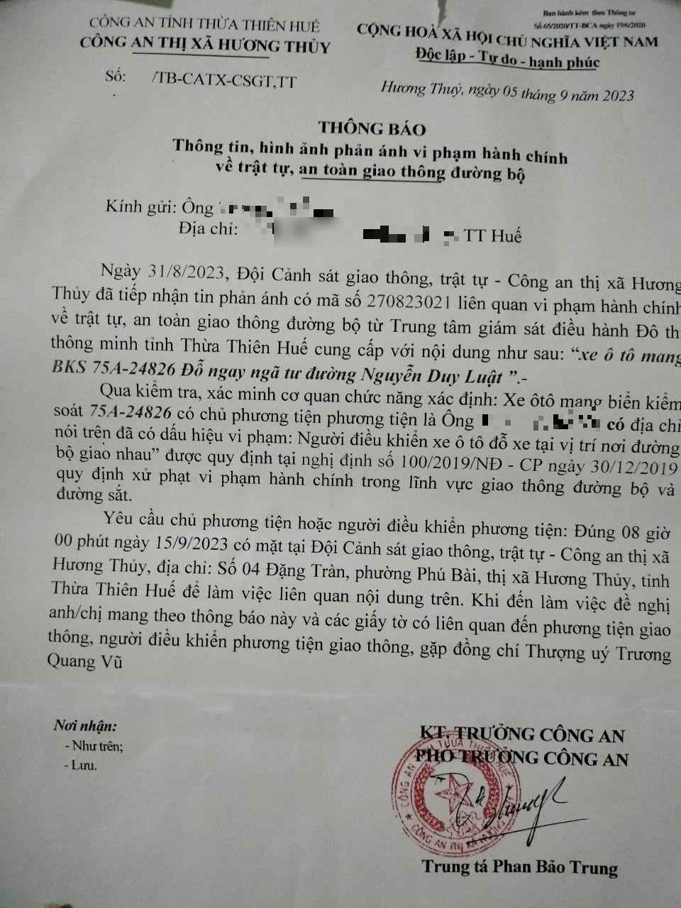 Vấn đề quý Ông/Bà phản ánh, Công an tỉnh đã chỉ đạo Công an thị xã Hương Thủy kiểm tra và xin thông báo kết quả xử lý như sau: