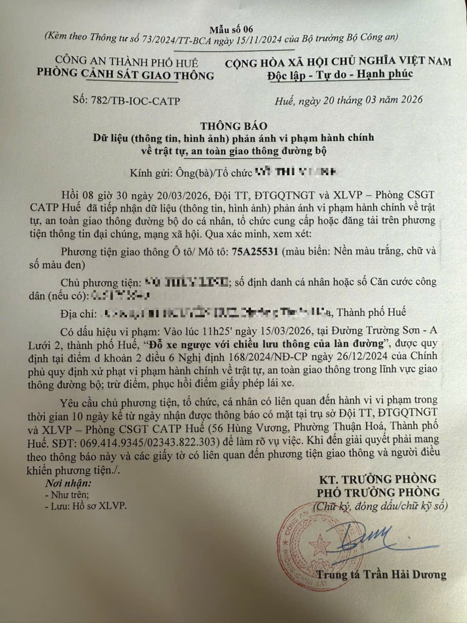 Vấn đề quý Ông/Bà phản ánh, Công an thành phố Huế đã chỉ đạo Phòng Cảnh sát giao thông xác minh và xin thông báo kết quả như sau: