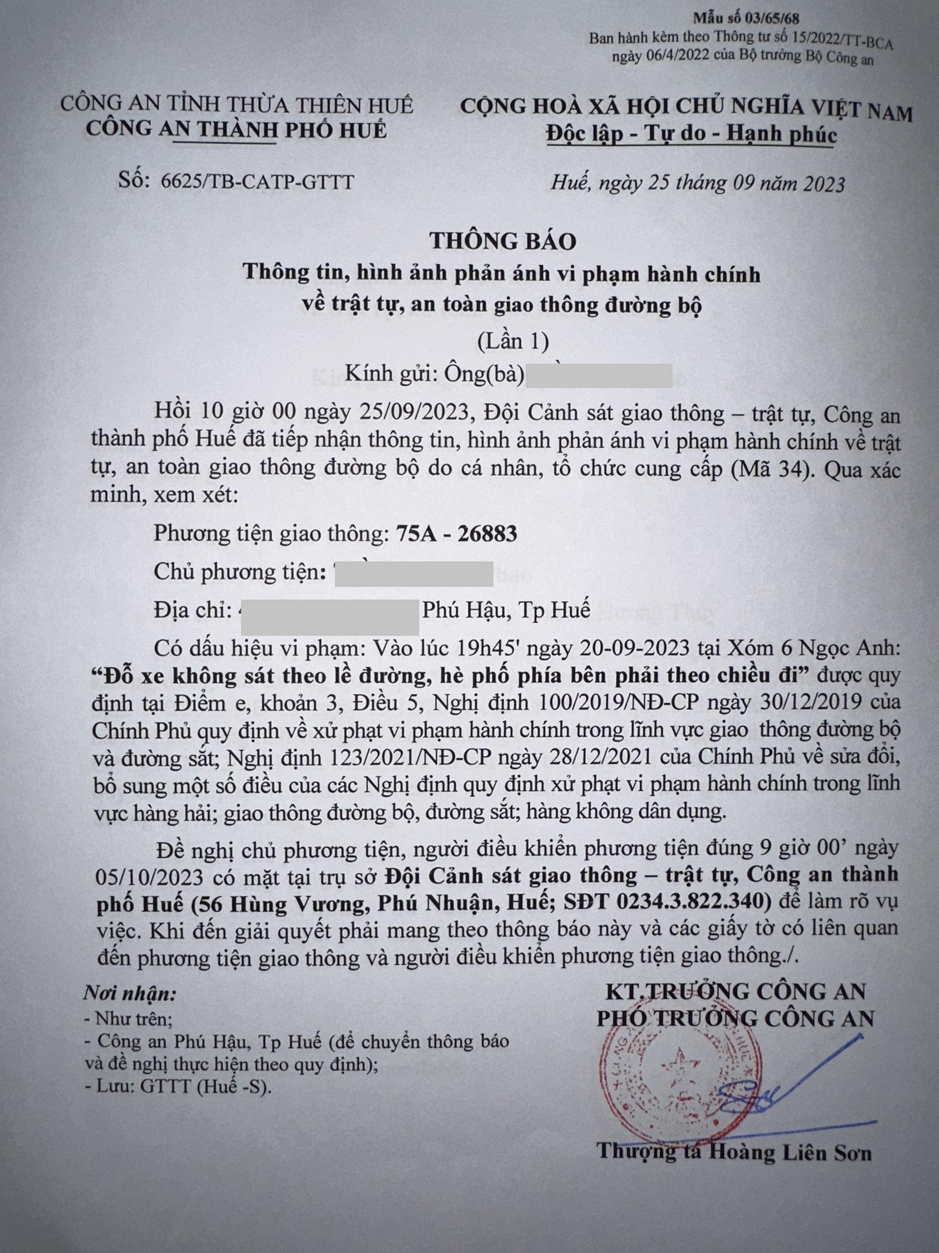 Vấn đề Ông/Bà phản ánh, Công an tỉnh đã chỉ đạo Công an thành phố Huế xác minh và xin thông báo kết quả như sau: