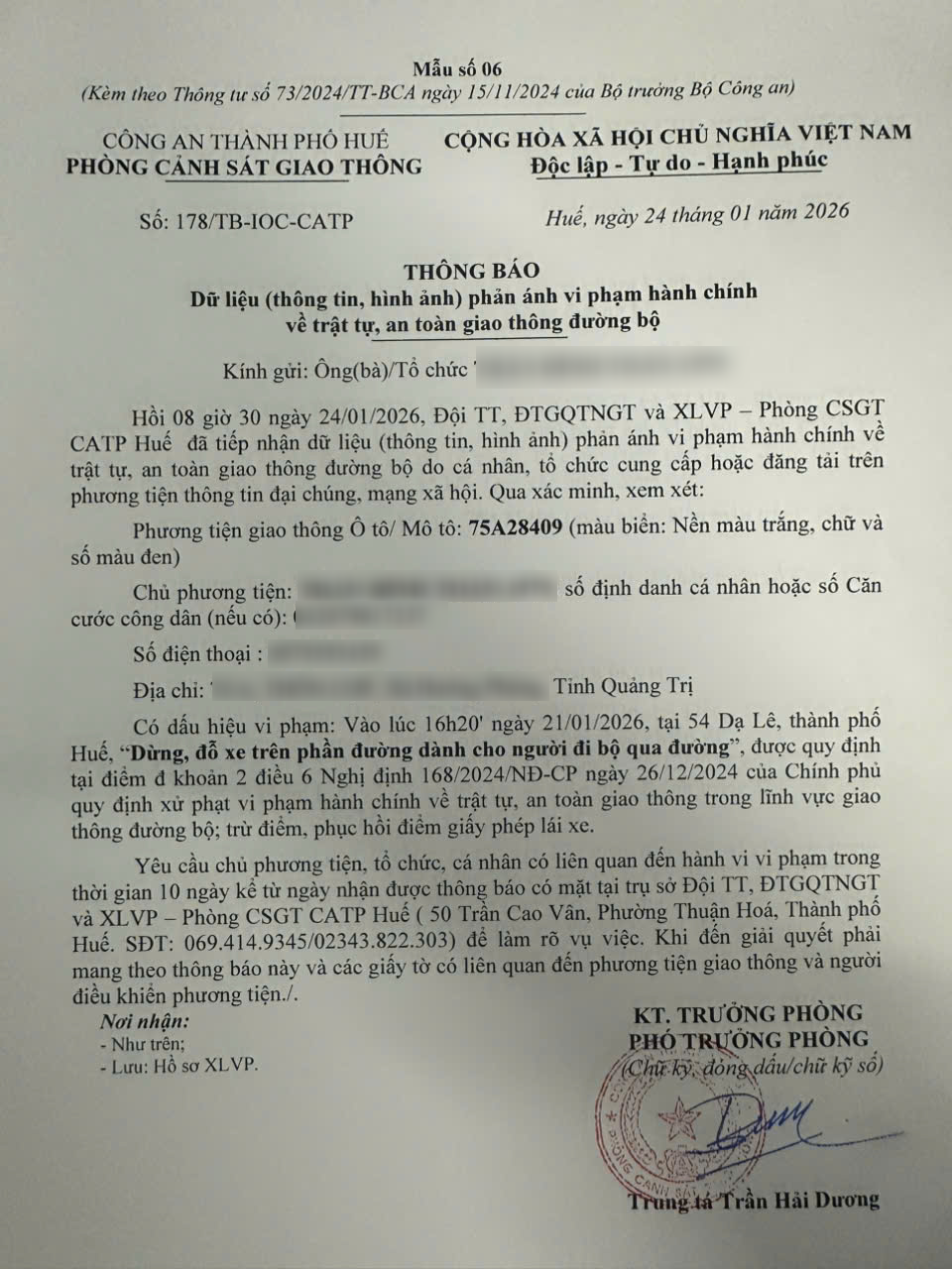 Vấn đề quý Ông/Bà phản ánh, Phòng Cảnh sát giao thông – Công an thành phố Huế đã kiểm tra và xin thông báo kết quả như sau: