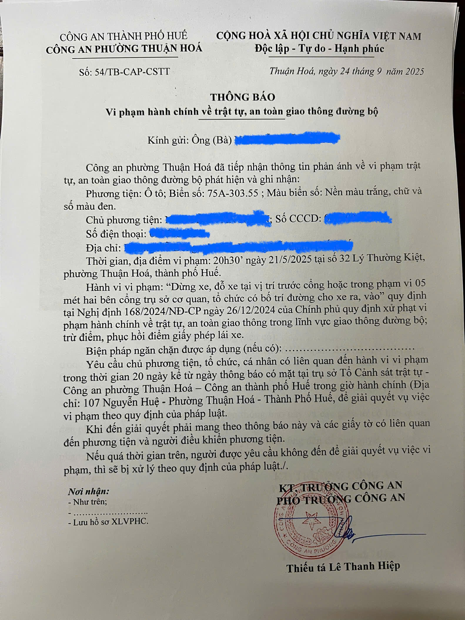 Công an phường Thuận Hóa đã lập hồ sơ, thông báo chủ phương tiện đến làm việc. Nếu quá ngày hẹn mà chủ phương tiện vẫn chưa đến trình diện tại cơ quan. Công an phường Thuận Hóa sẽ gửi thông báo cho cơ quan đăng kiểm để đưa phương tiện vào cảnh báo trên Chương trình Quản lý kiểm định.