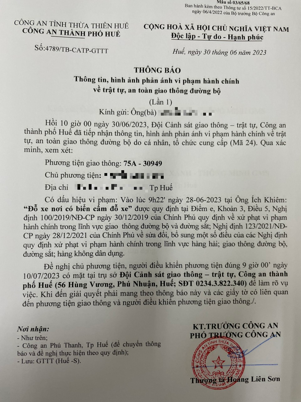 Vấn đề quý Ông/Bà phản ánh, Công an tỉnh đã chỉ đạo Công an thành phố Huế kiểm tra và xin thông báo kết quả xử lý như sau: