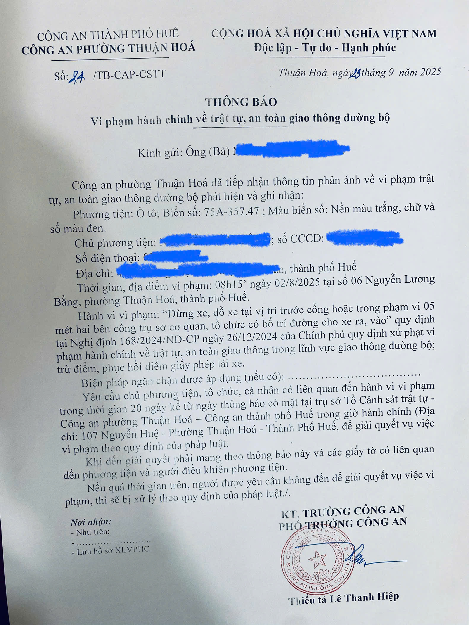 Công an phường Thuận Hóa đã lập hồ sơ, thông báo chủ phương tiện đến làm việc. Nếu quá ngày hẹn mà chủ phương tiện vẫn chưa đến trình diện tại cơ quan. Công an phường Thuận Hóa sẽ gửi thông báo cho cơ quan đăng kiểm để đưa phương tiện vào cảnh báo trên Chương trình Quản lý kiểm định.