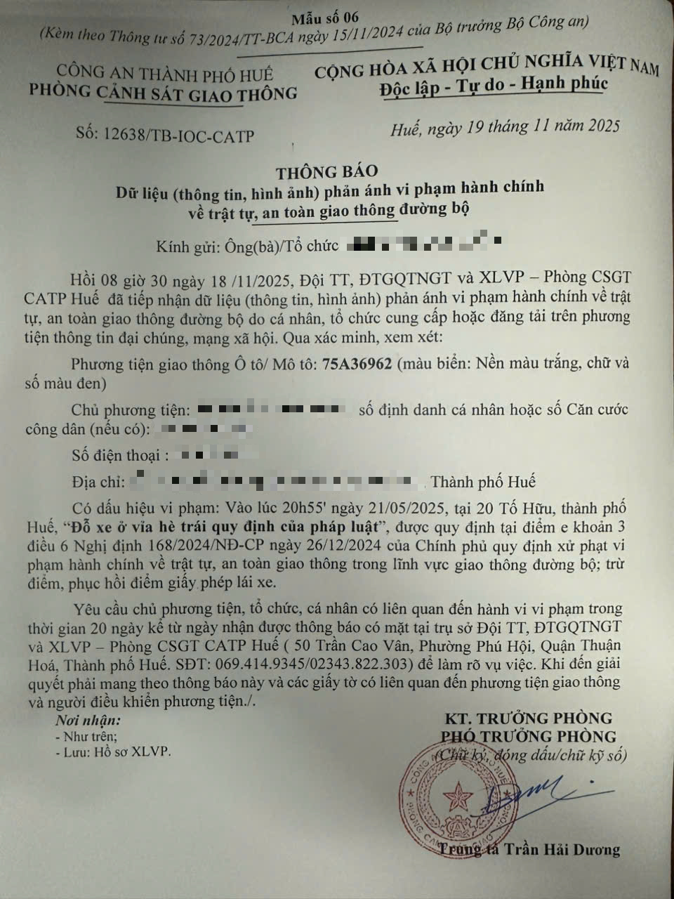 Vấn đề quý Ông/Bà phản ánh, Phòng Cảnh sát giao thông – Công an thành phố Huế đã kiểm tra và xin thông báo kết quả như sau: