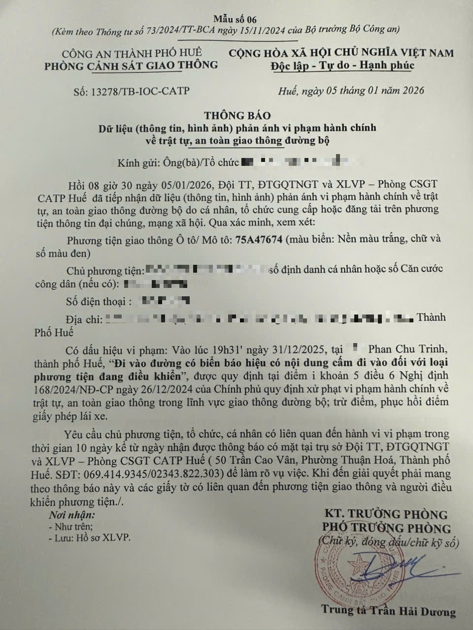 Vấn đề quý Ông/Bà phản ánh, Phòng Cảnh sát giao thông – Công an thành phố Huế đã kiểm tra và xin thông báo kết quả như sau: