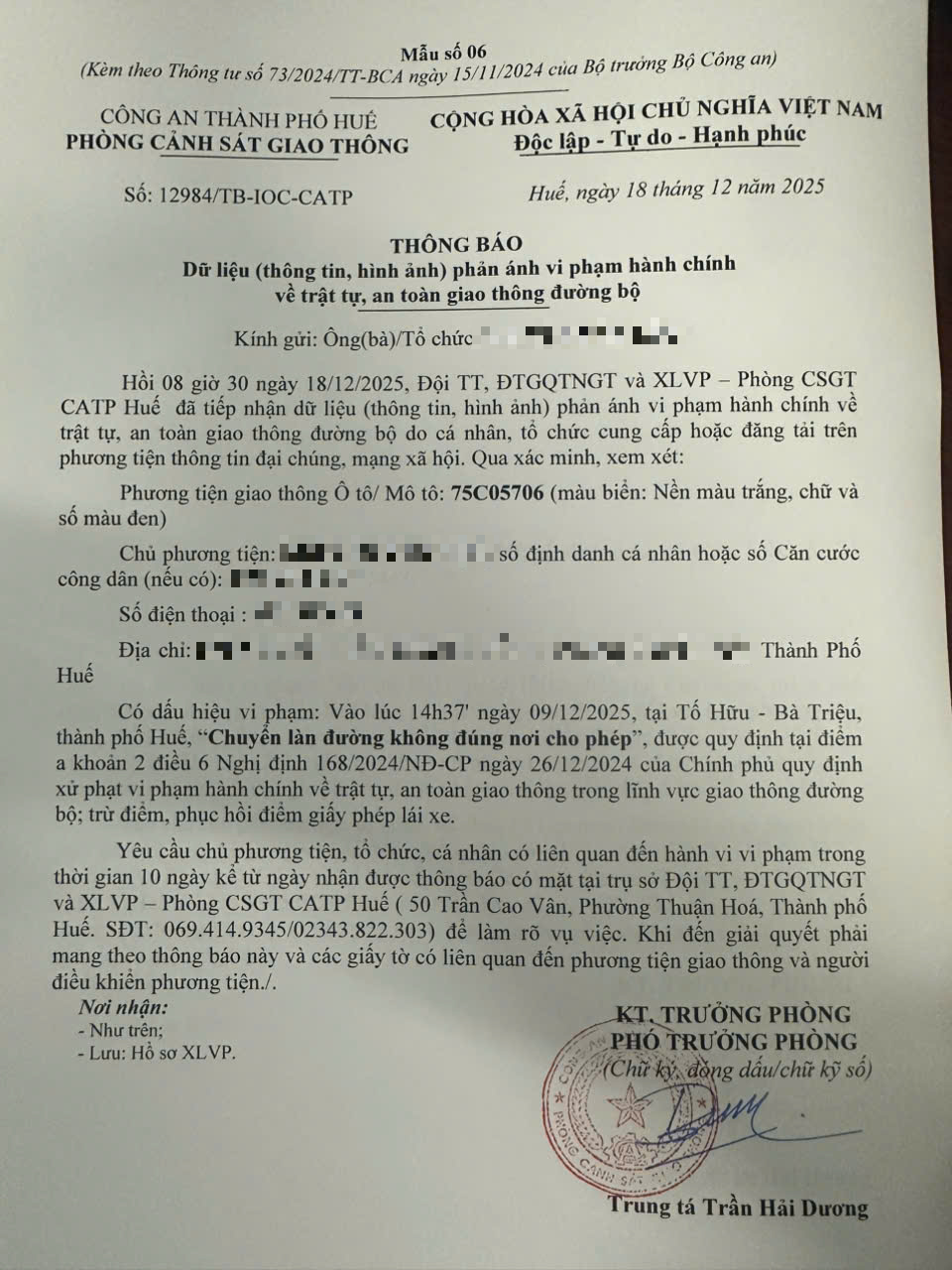 Vấn đề quý Ông/Bà phản ánh, Phòng Cảnh sát giao thông – Công an thành phố Huế đã kiểm tra và xin thông báo kết quả như sau: