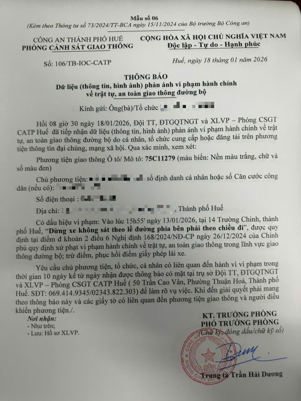 Vấn đề quý Ông/Bà phản ánh, Phòng Cảnh sát giao thông – Công an thành phố Huế đã kiểm tra và xin thông báo kết quả như sau:
